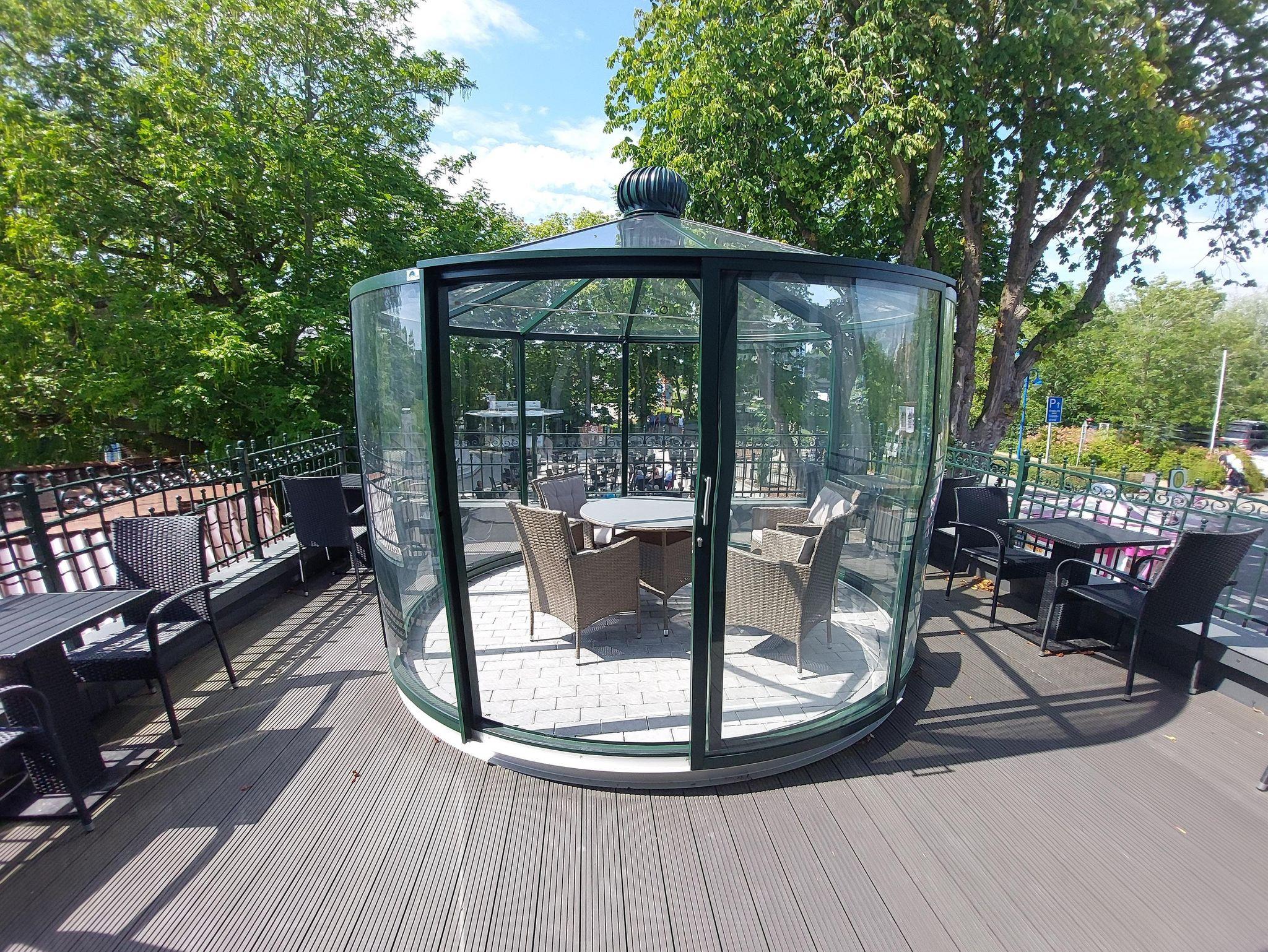 Unser Strandkorb-Zimmer verfügt über keine Küche oder größere Sitzecke. Gehen Sie gemütlich Essen oder holen Sie sich etwas von einem der umliegenden Restaurants und genießen Sie die Dachterasse mit Pavillon.