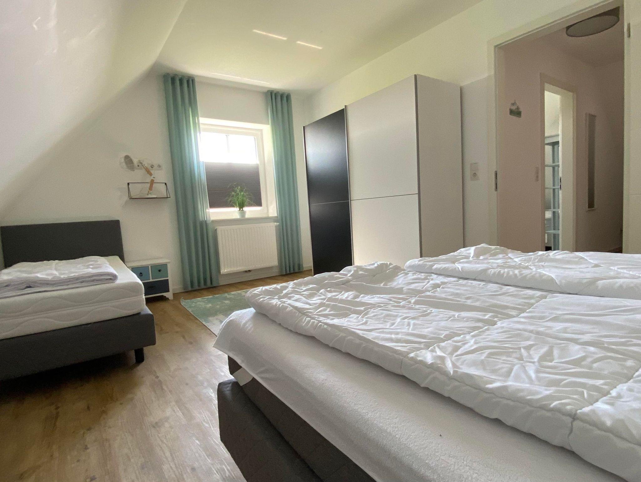 Ferien-Doppelhaushälfte 17 (80 m²) für bis zu 8 Personen im Erd-/Obergeschoss und Spitzboden (Zugang über eine steile Treppe)