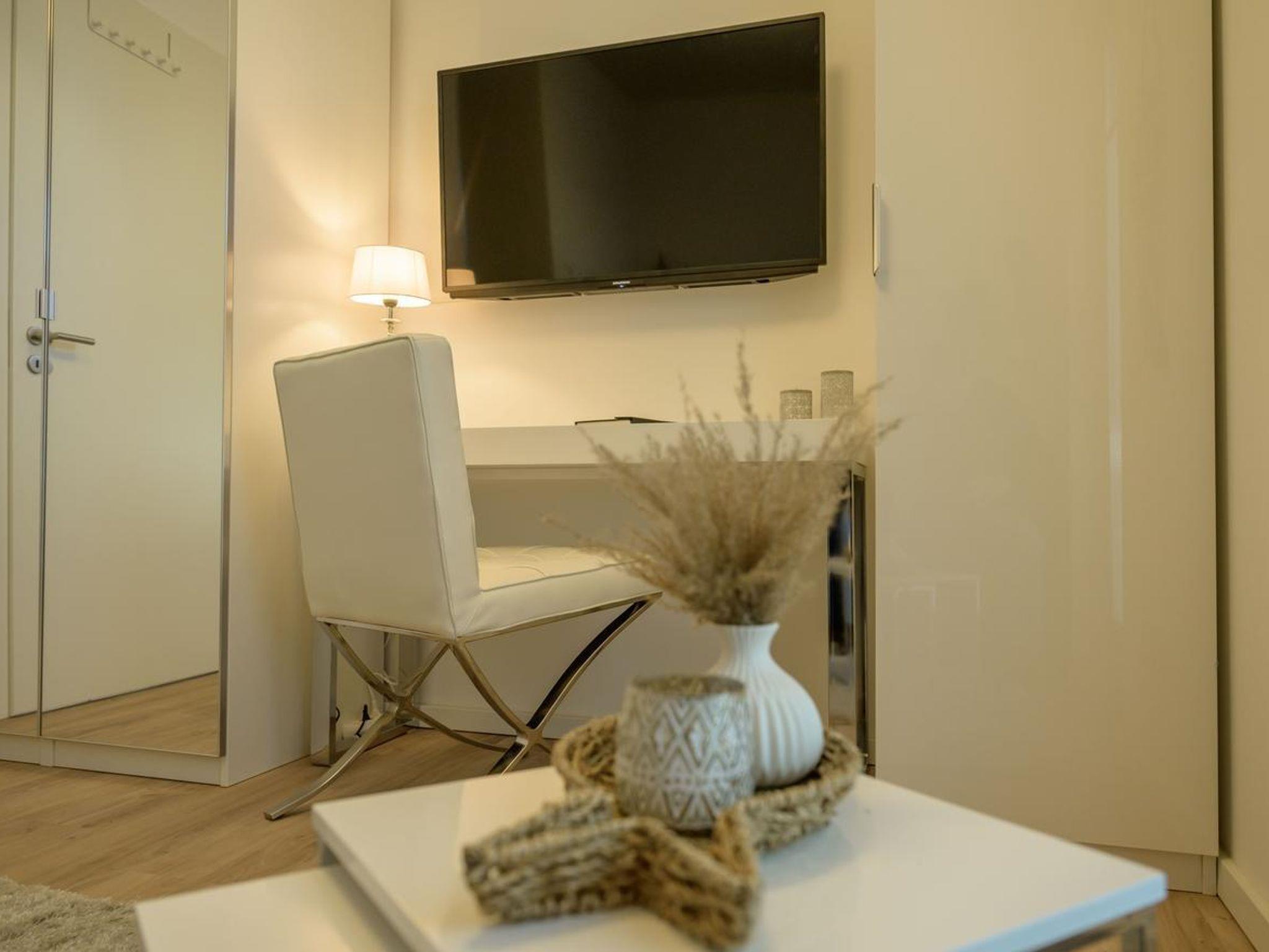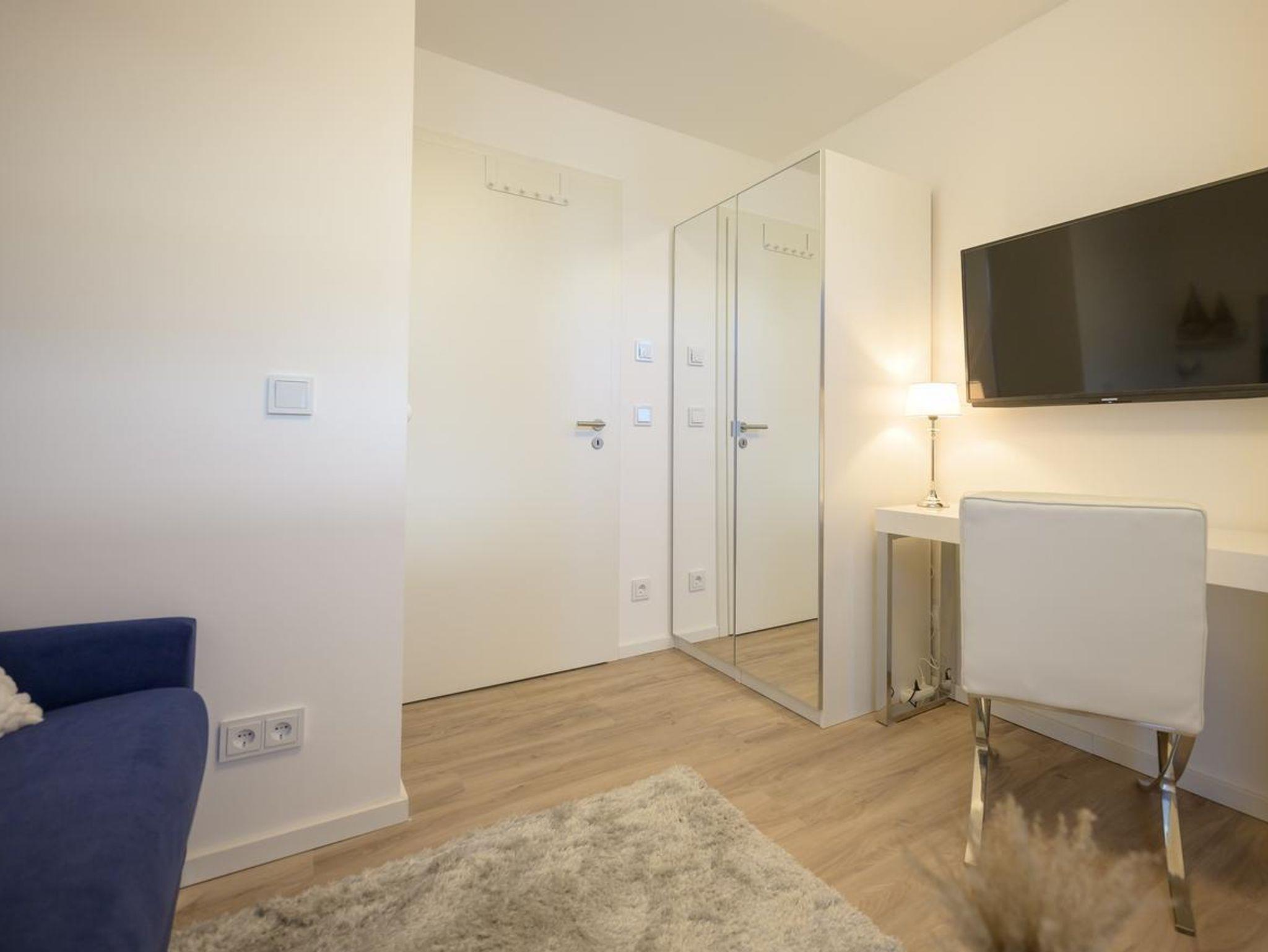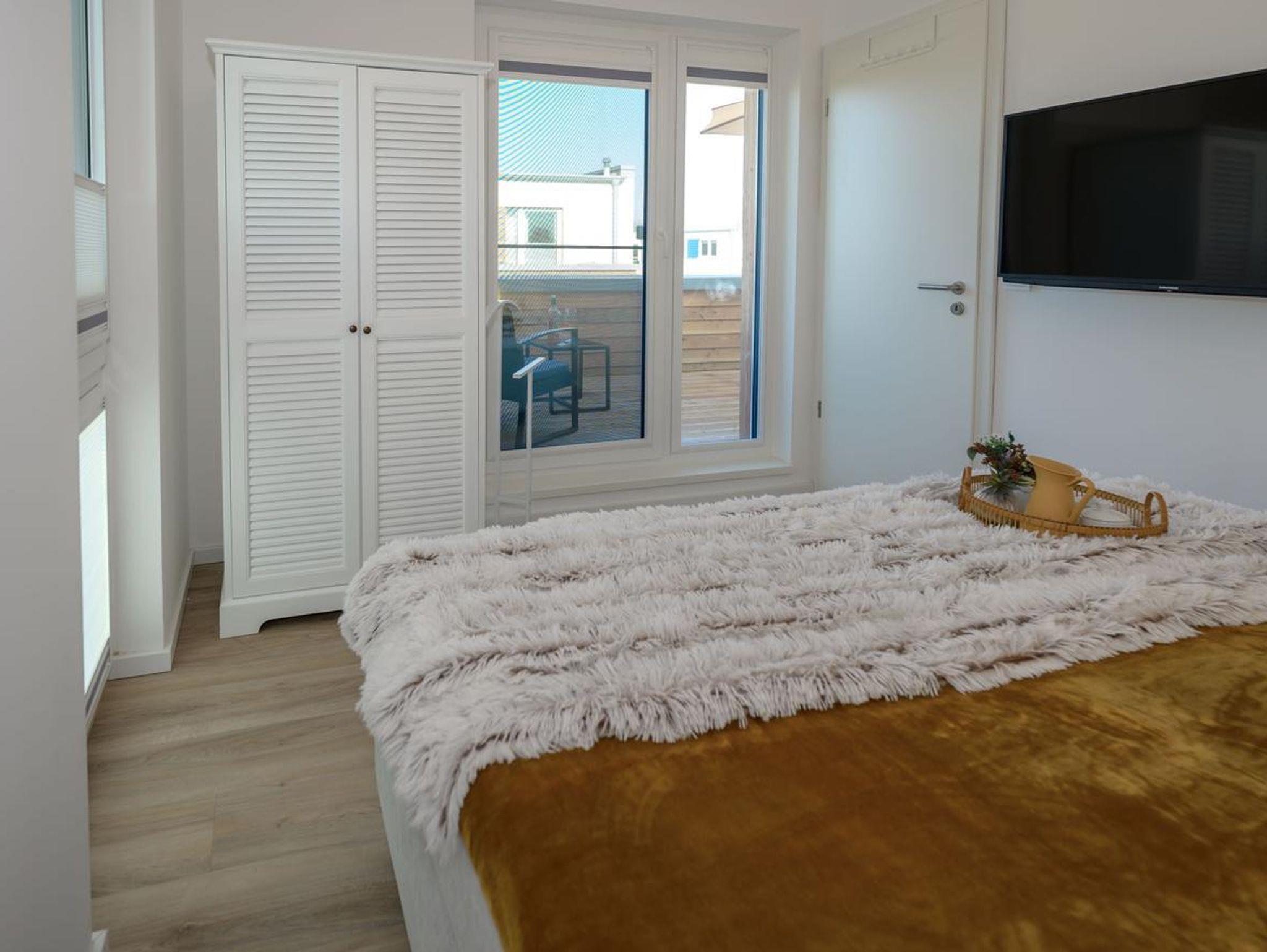 • Zwei Schlafzimmer, Beide Räume verfügen über große Kleiderschränke und je einen TV