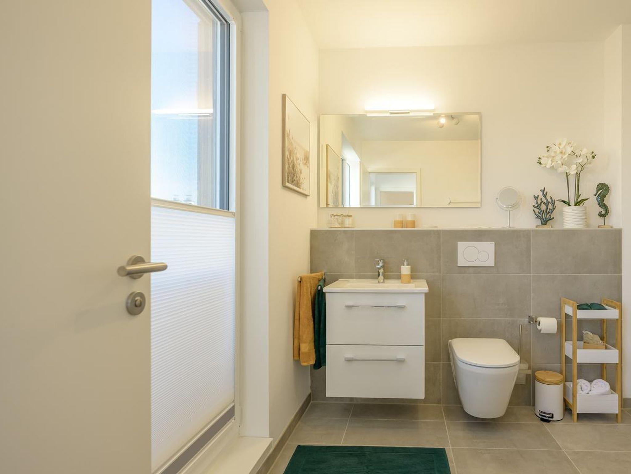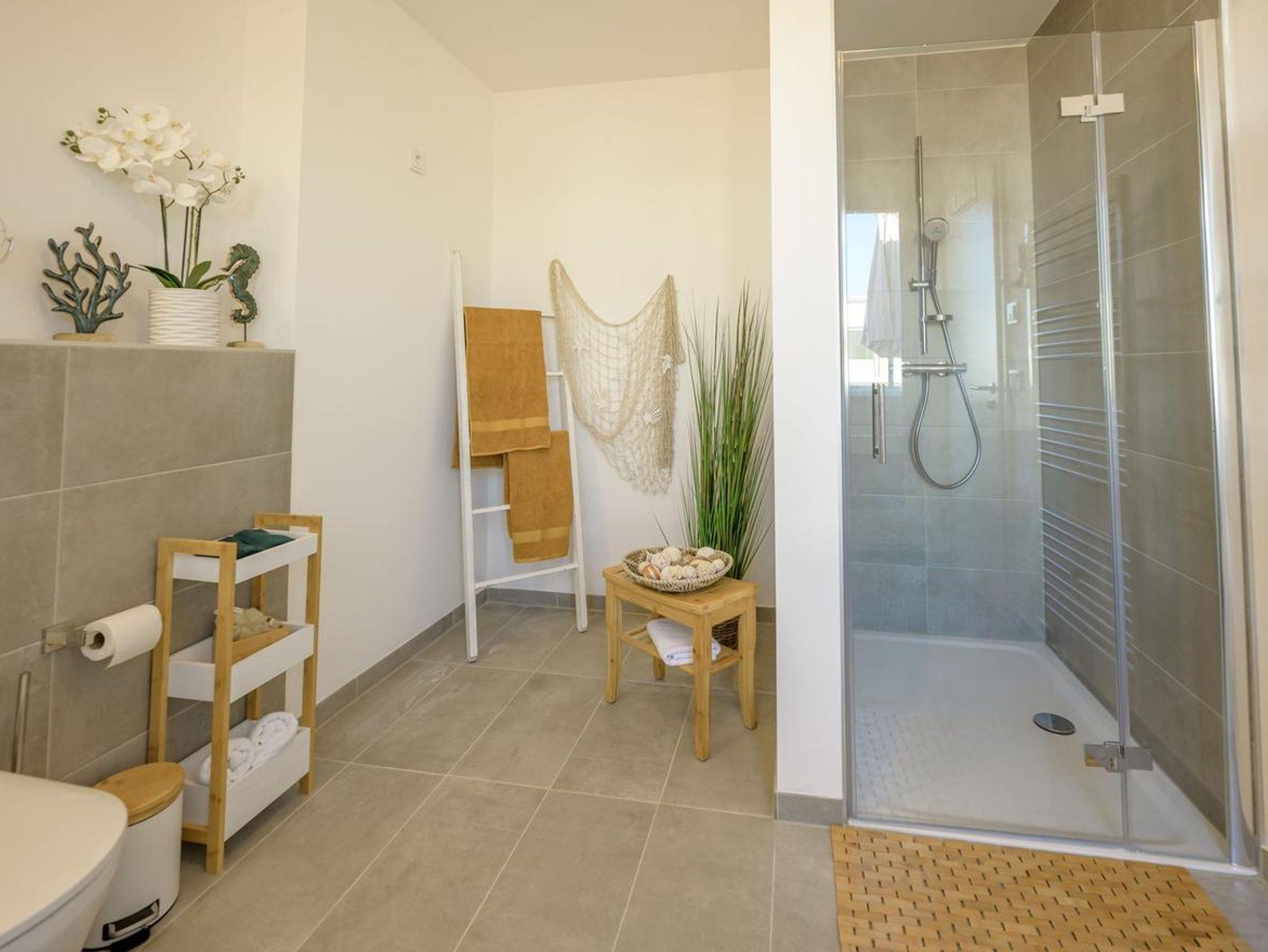 • Luxusbad mit bodengleicher Dusche sowie WC – Wellness pur direkt in der Unterkunft