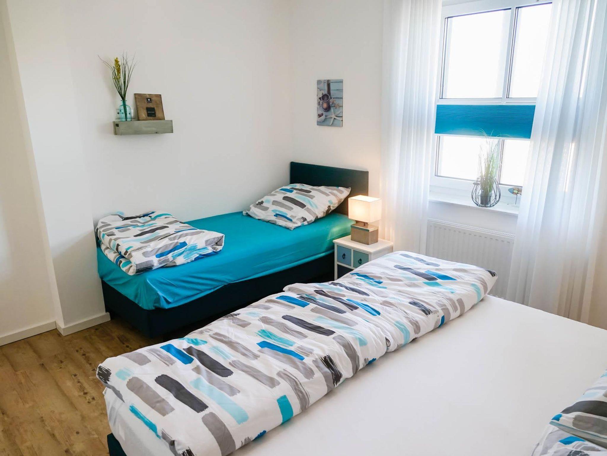 • 2 Schlafzimmer: ein Zimmer mit Doppelbett und Einzelbett, ein Einzelzimmer, Bettwäsche auf Wunsch (Fenster mit Plissees)