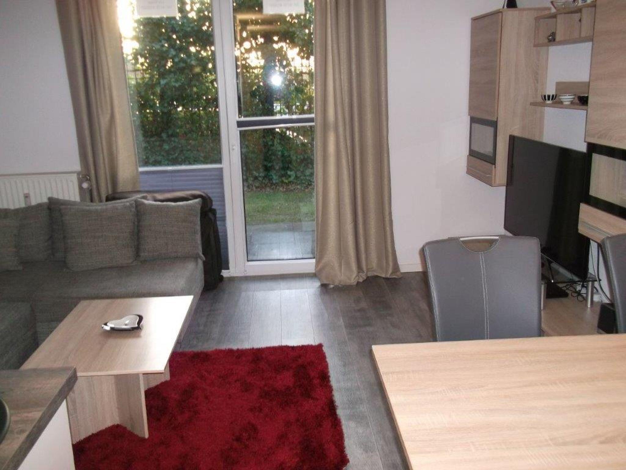 Auf 55 m² bietet die Wohnung, aufgeteilt auf 2 Zimmer mit je einem Bad (Dusche/WC), genügend Platz für 4 Personen. Das Schlafzimmer ist ausgestattet mit einem Doppelbett (Breite 1,80m), Kleiderschrank, TV und Frisiertisch. Im zweiten Zimmer (Wohn- und Essbereich) befindet sich eine voll ausgestattete Küchenzeile mit Geschirrspüler, Ceranfeld, Kühlschrank, Mikrowelle und Kaffeemaschine sowie ein Essbereich für 4 Personen und eine Sitzecke mit TV und Radio. Die Sitzecke lässt sich zu einer weiteren Schlafmöglichkeit für 2 Personen umbauen. Die Wohnung verfügt über 2 Terrassen mit Gartenmöbeln und einem Strandkorb. Diese laden zu gemütlichen Abenden und zur Erholung ein.