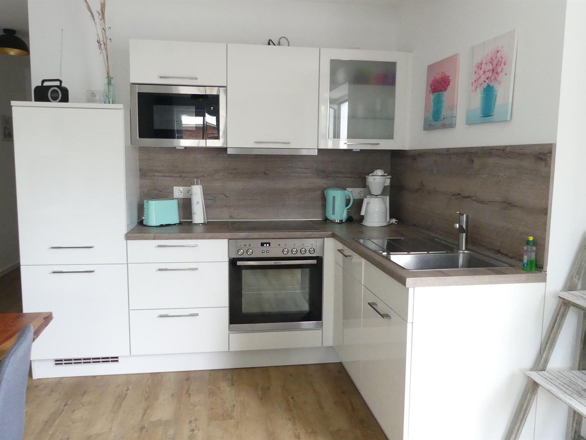 • Küche: Backofen, Herd, Mikrowelle, Kaffeemaschine, Toaster, Wasserkocher, Geschirr und Besteck, Geschirrspüler
