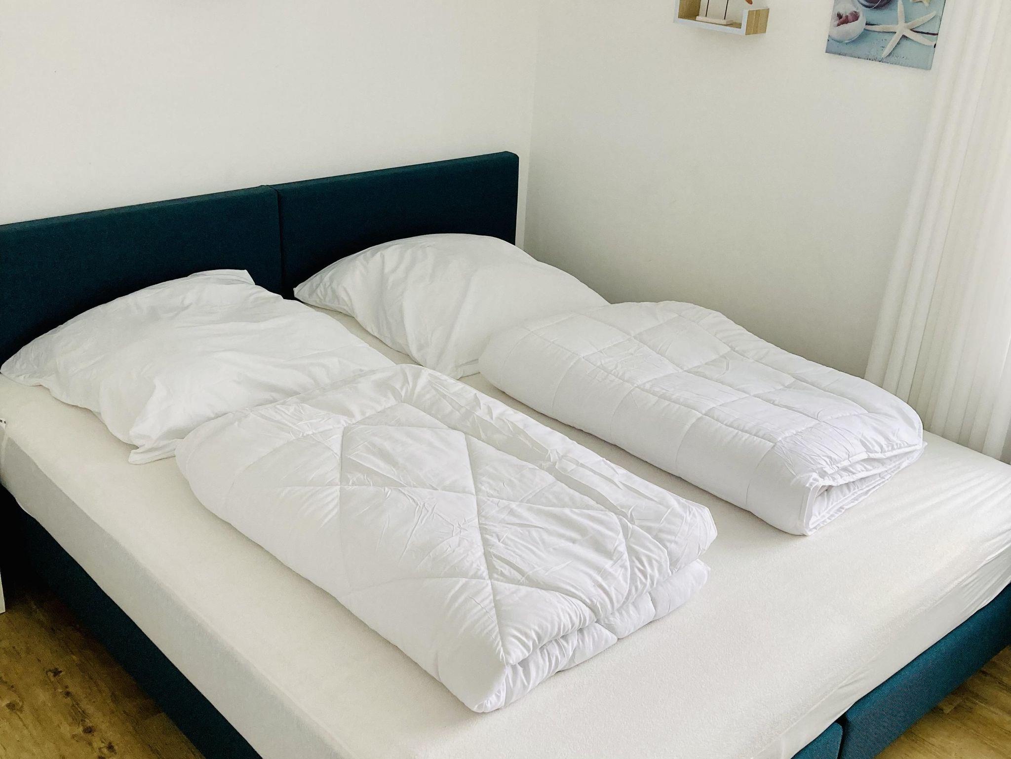 • 2 Schlafzimmer: ein Zimmer mit Doppelbett und Etagenbett, ein Zimmer mit 2 Einzelbetten, Bettwäsche auf Wunsch (Fenster mit Plissees)