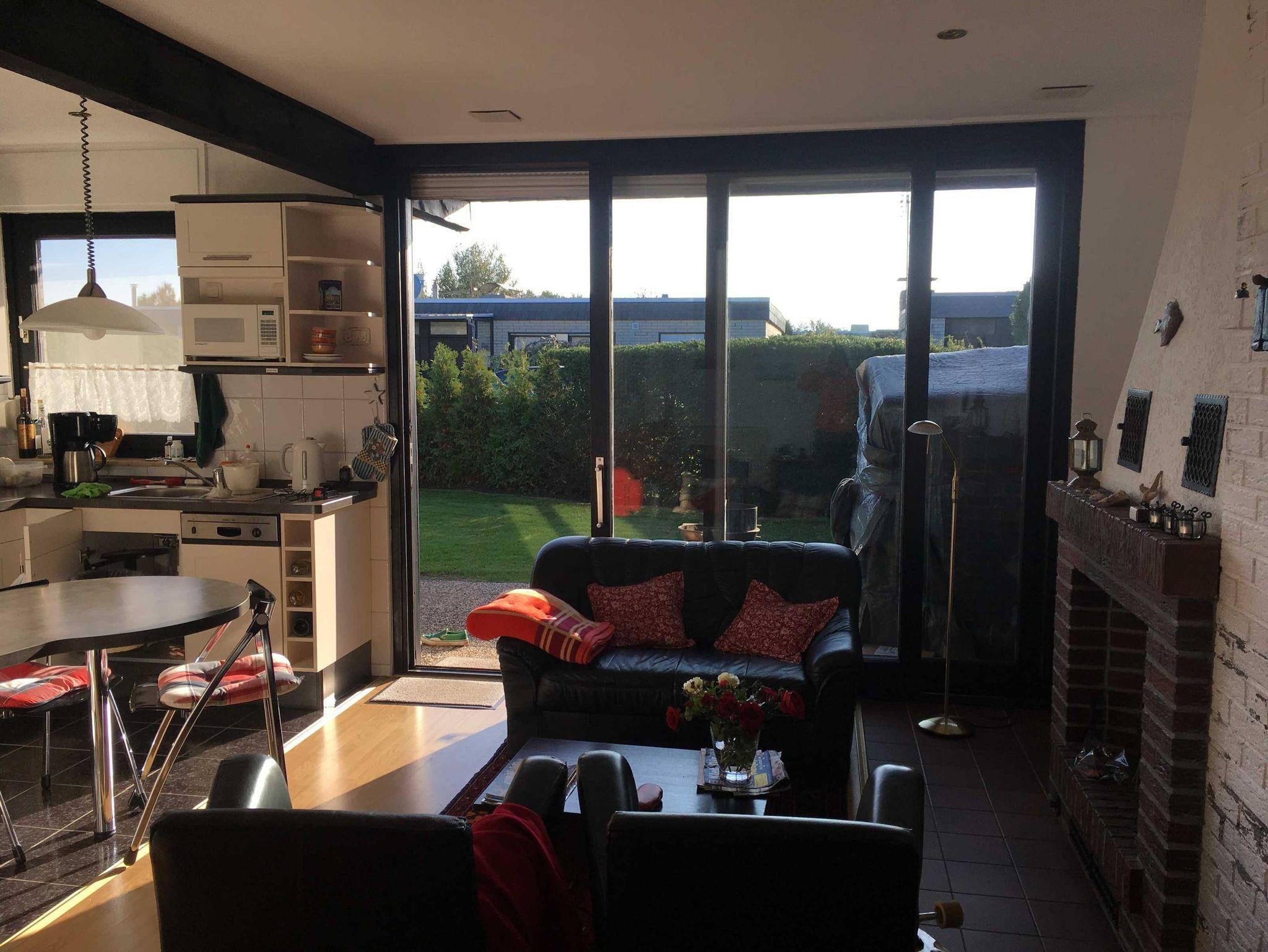 Das Ferienhaus verfügt über eine moderne und helle Einrichtung, es sind keine Treppen vorhanden. Es gibt ein Schlafzimmer mit einem Doppelbett (180 x 190cm groß), sowie einen großen, hellen Wohnbereich mit Sofa und TV-Gerät. Die angrenzende Küche ist ist sehr gut ausgestattet (Spülmaschine). Das Haus hat WLAN, ist ein Nichtraucherhaus und hat einen Parkplatz direkt am Bungalow. Vom Wohnbereich aus hat man einen direkten Zugang zur Terrasse mit Garten, der nicht einsehbar ist und zu einem hinteren Garten, der ebenfalls wenig einsehbar ist. Die Gärten können nur von den Gästen genutzt werden. Der Kamin auf den Fotos kann nicht genutzt werden.