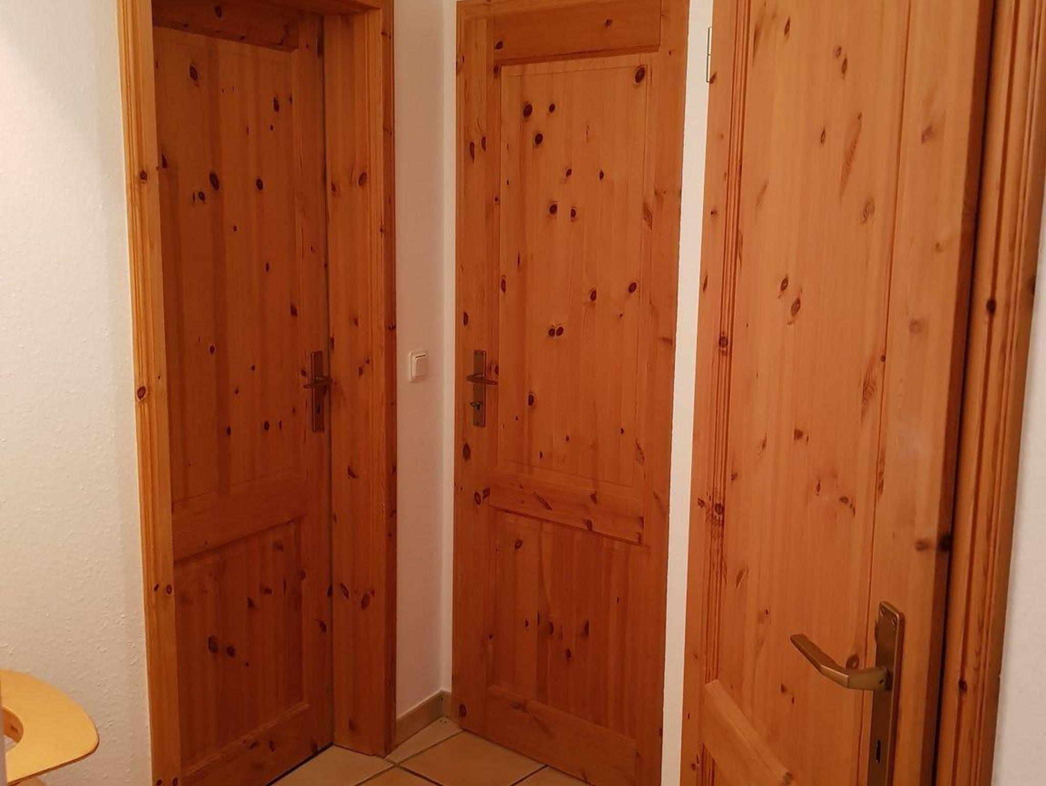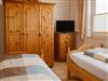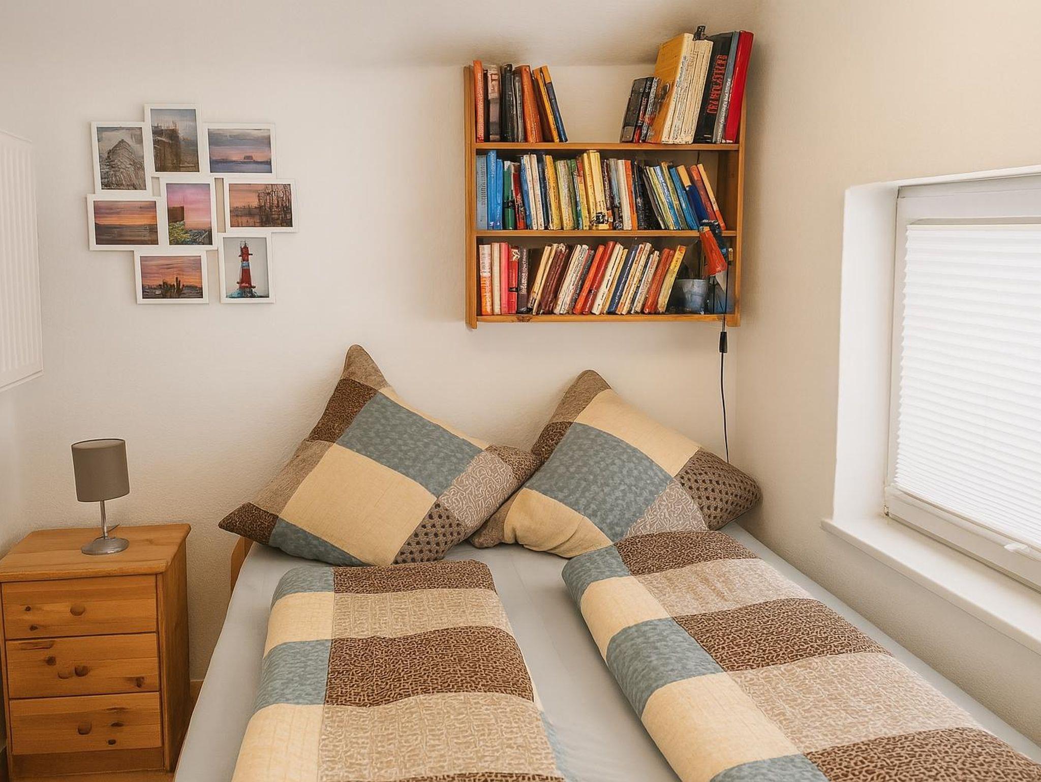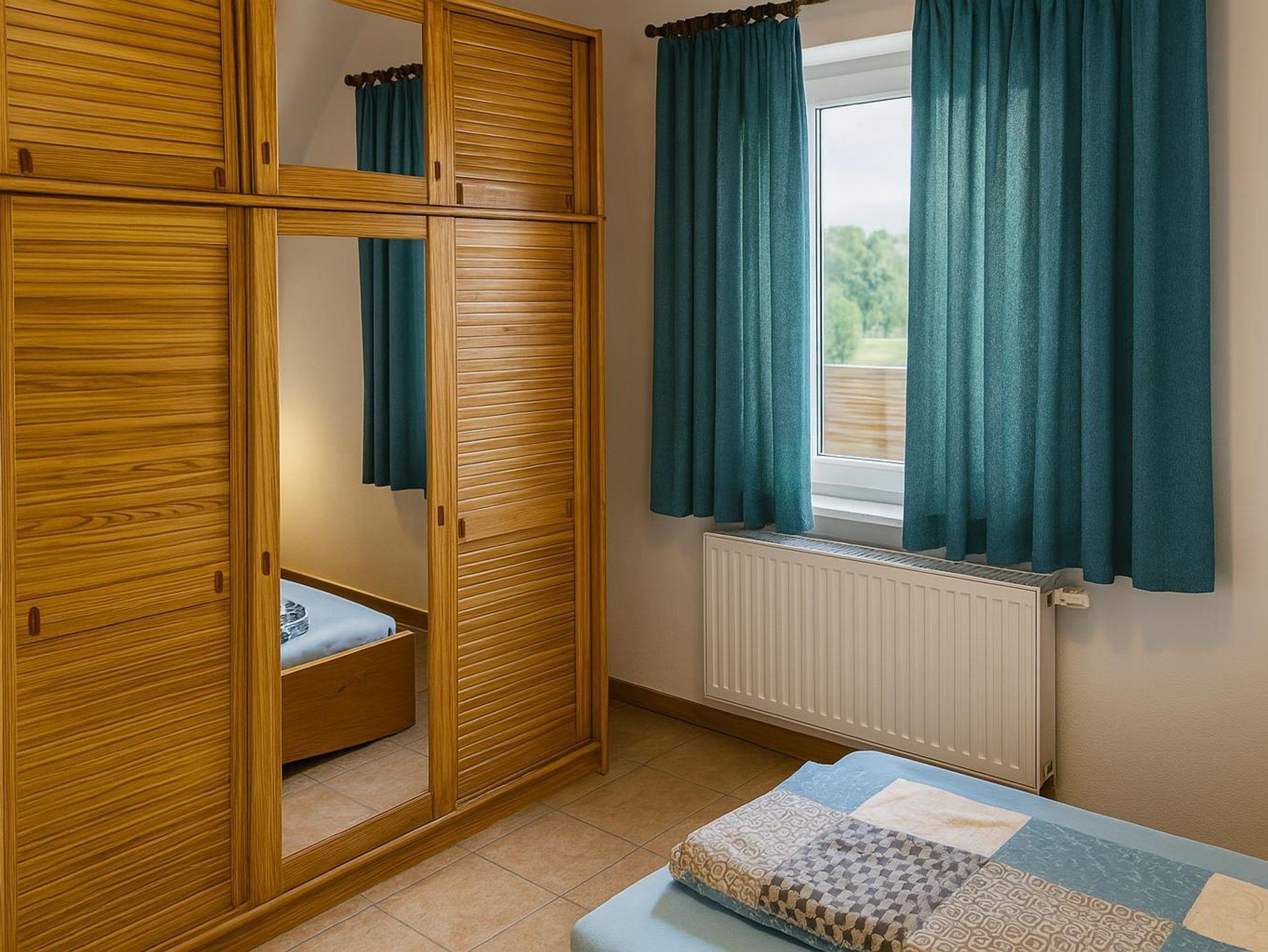 Das gemütliche Schlafzimmer bietet Platz für zwei Gäste. Hier befinden sich zwei Einzelbetten, ein Nachttisch mit Lampe, ein großer Kleiderschrank sowie eine kleine Kommode. Außerdem befindet sich hier ein Babyreisebett, welches bei Bedarf aufgestellt werden kann.