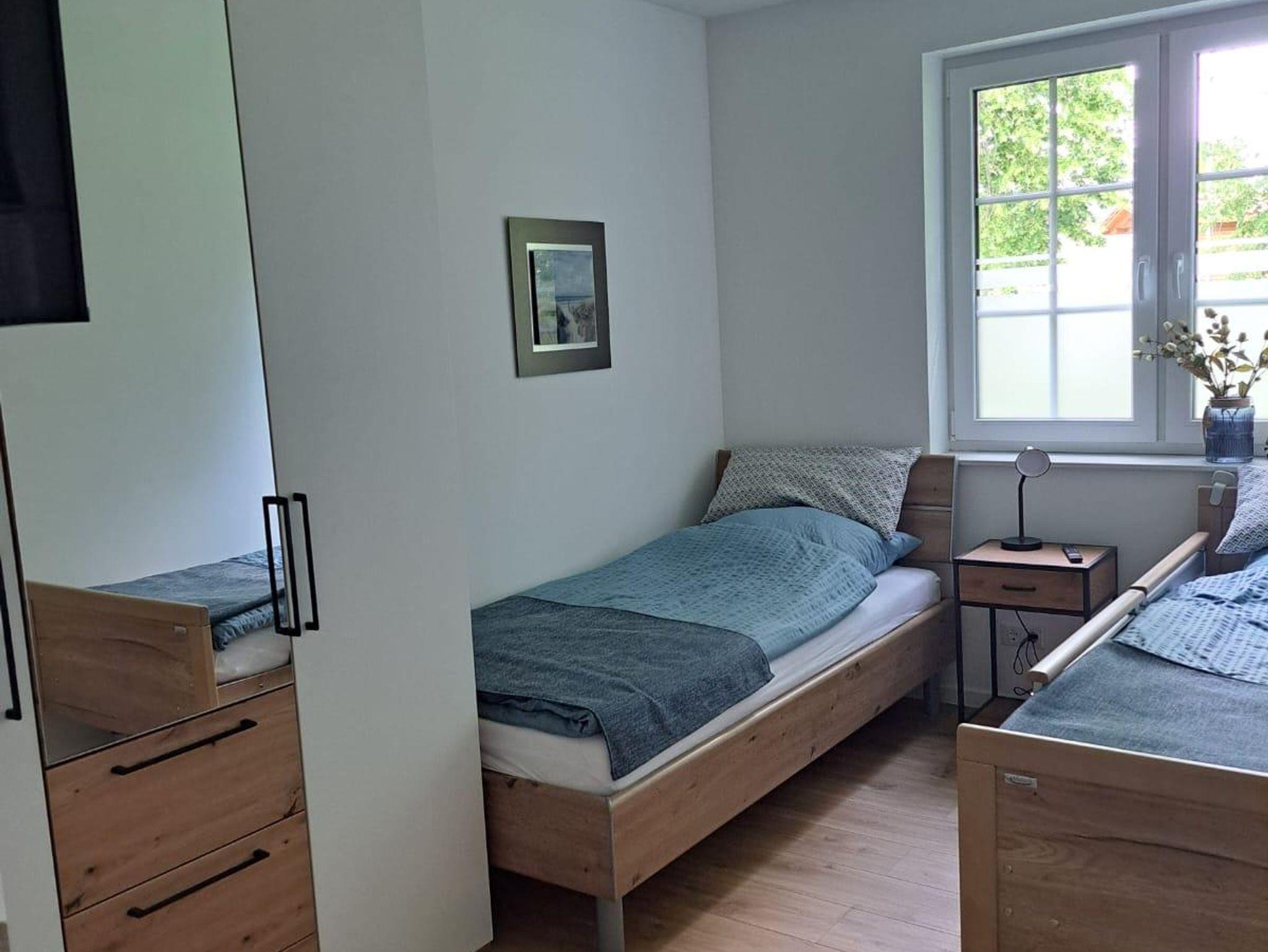 • Ein zweites Schlafzimmer mit zwei Einzelbetten, davon eines elektrisch höhenverstellbar und mit Seitenteilen (Rausfallschutz) – ideal für Kinder oder Personen mit Mobilitätseinschränkungen