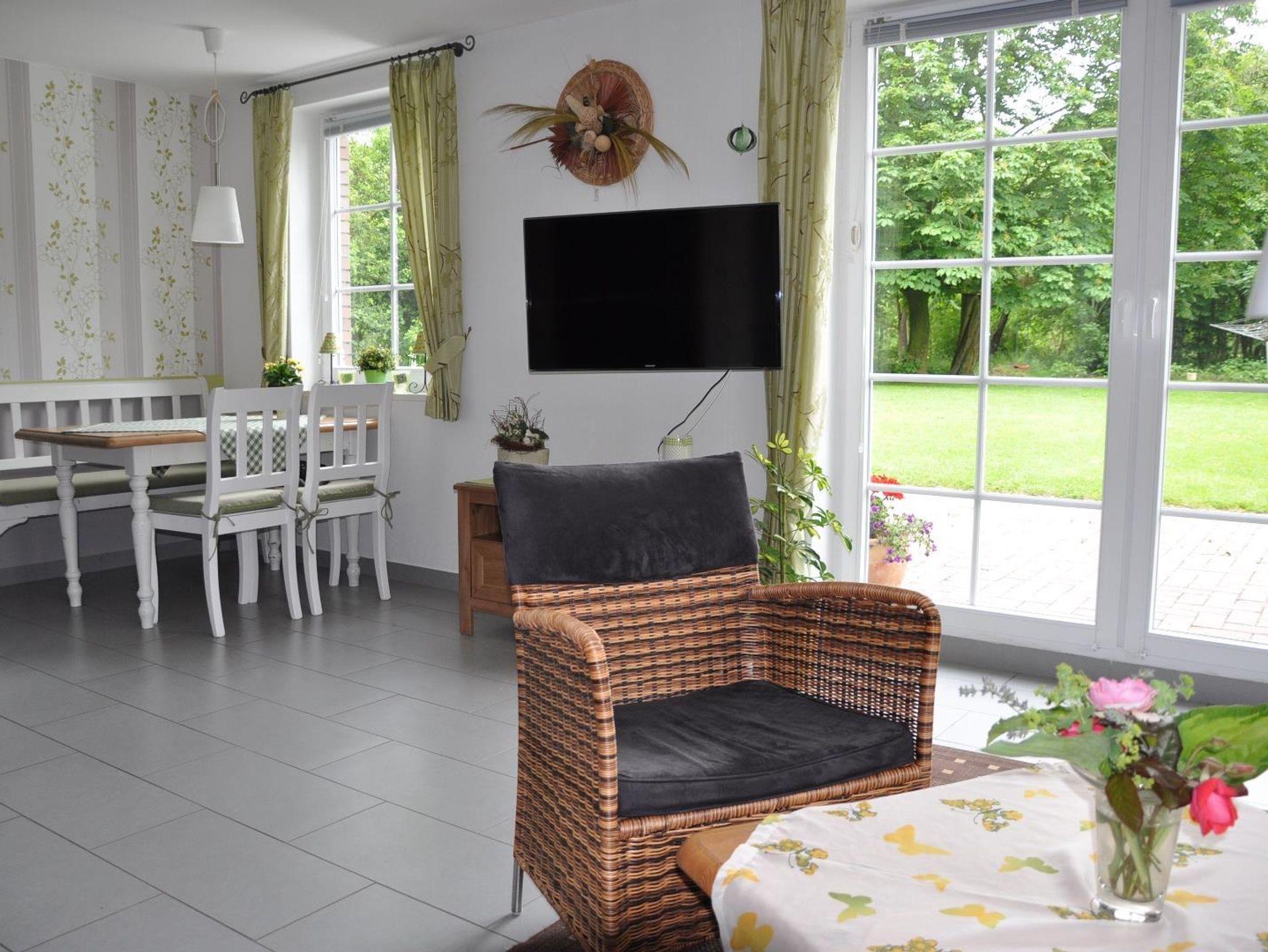 Unsere ca. 80 qm große, liebevoll gestaltete Nichtraucher-Ferienwohnung ist ruhig mit einem riesigen Gartengrundstück in Waddens gelegen, ca. 4 km von Burhave entfernt. Sie ist ideal für 4 Personen und liegt unmittelbar am Nationalpark, direkt am Deich. Die Ferienwohnung hat zwei Doppelschlafzimmer, eine komplett eingerichtete Küchenzeile mit Sitzecke kombiniert mit dem Wohnzimmer (Radio, TV) mit gemütlicher Sitzecke, die für eine Person ausziehbar ist. Das Badezimmer ist mit Dusche/WC ausgestattet und es gibt einen Extraraum für Regensachen etc. Fahrräder stehen den Gästen kostenlos zur Verfügung. Bettwäsche und Handtücher sind inklusive.
