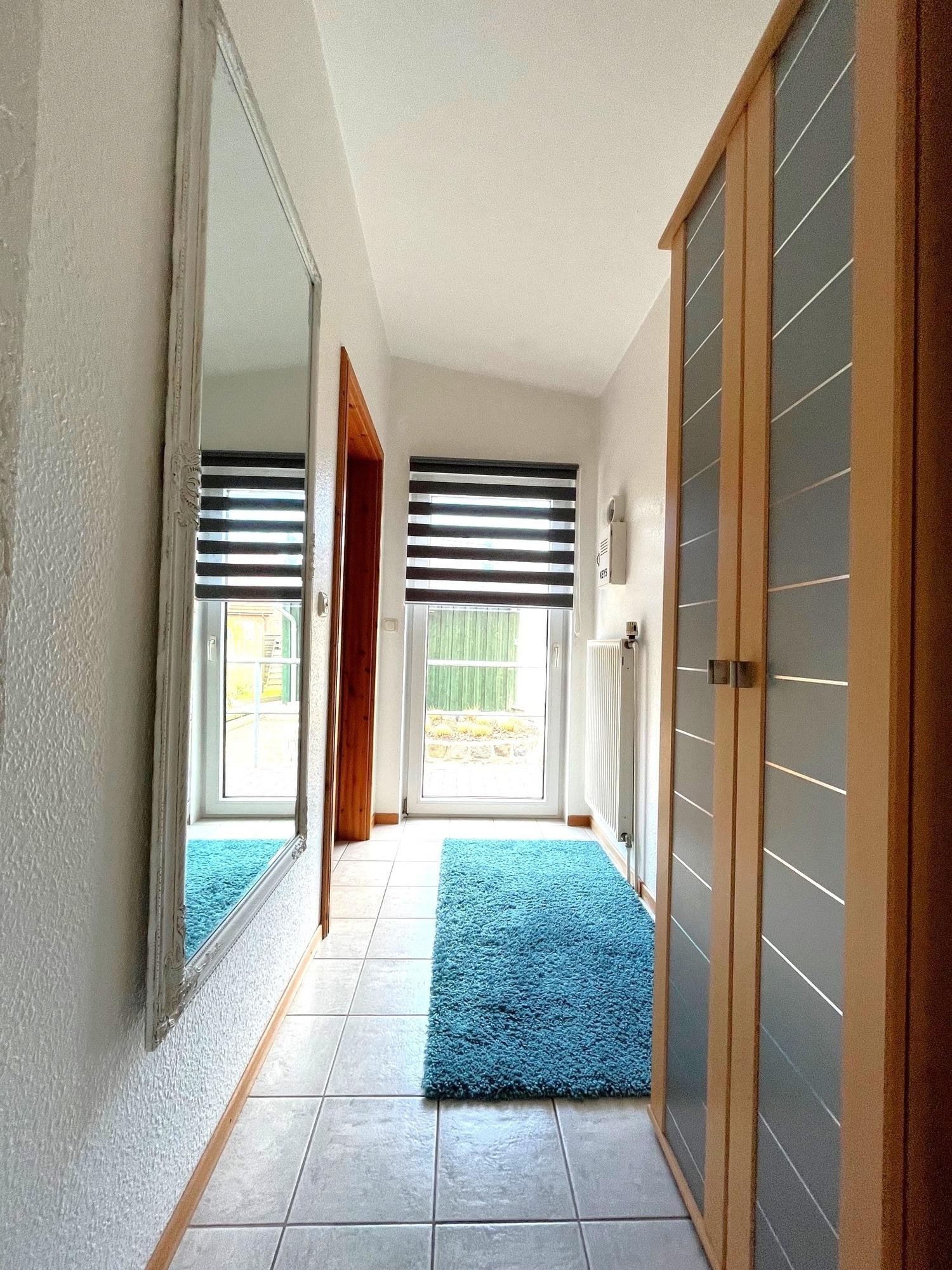 Ferienwohnung 1 verfügt über 55 qm Wohnfläche,sowie einen gemütlichen Wohn-Essbereich mit ausziehbarer Schlafcouch für 2 Personen und einem großen Panoramafenster mit Blick auf den liebevoll angelegten 1100 qm großen Garten,eine voll ausgestattete Küche mit Mikrowelle und Backofen,ein großes Badezimmer mit Dusche,sowie ein Schlafzimmer mit zwei Einzelbetten .Sie haben direkten Zugang zur windgeschützten ,überdachten Terrasse.Terrassenmöbel sowie Gartenliegen stehen Ihnen für entspannte Urlaubstage zur Verfügung.Für unsere kleinen Gäste gibt es eine Vogelnestschaukel und einen Sandkasten.