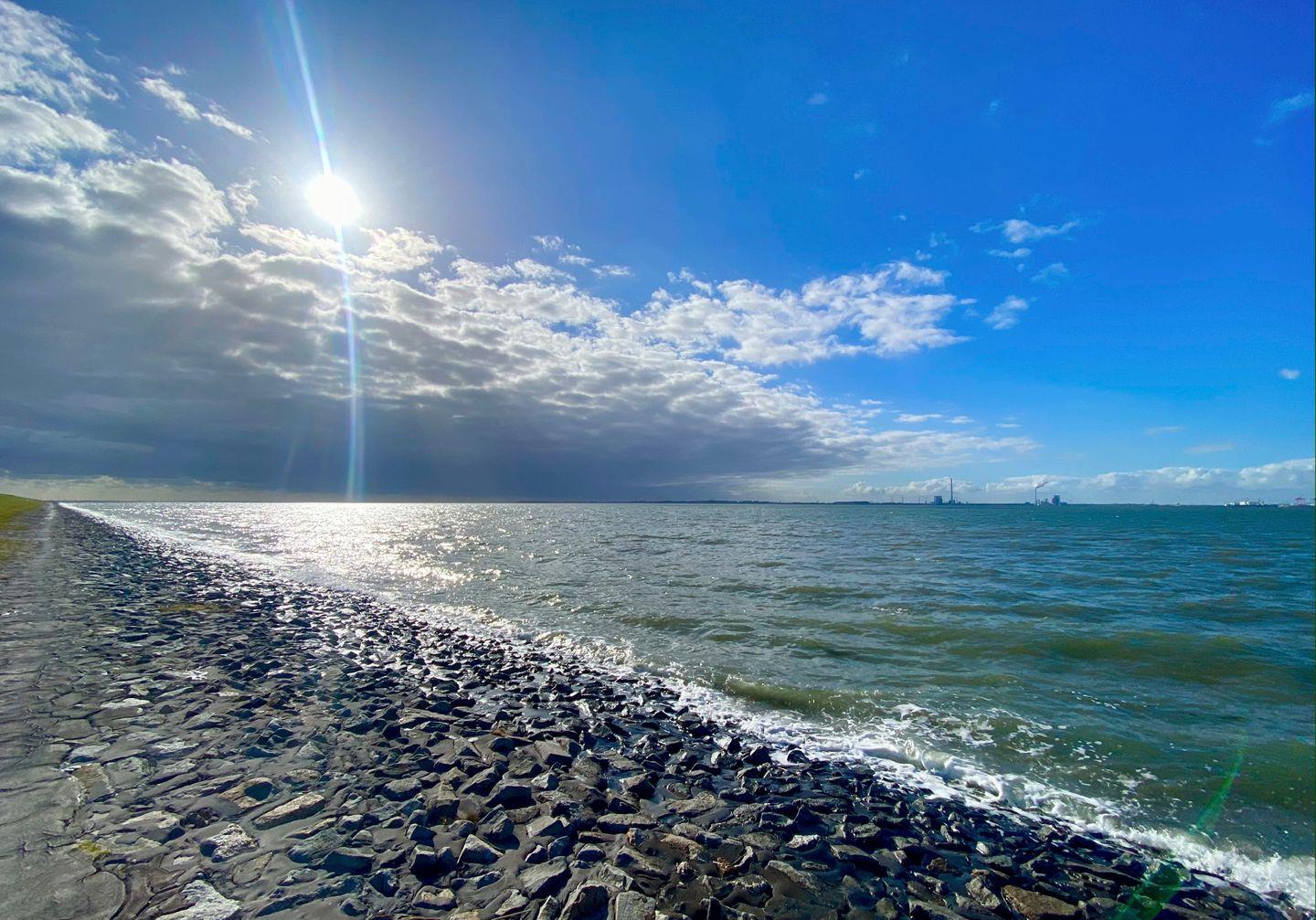 Über einen hauseigenen Steg gelangen Sie entlang der Pütten in nur wenigen Minuten zum Deich. Nun trennen Sie nur noch ca. 50 Stufen vom Blick über die Nordsee zur Skyline von Wilhelmshaven.