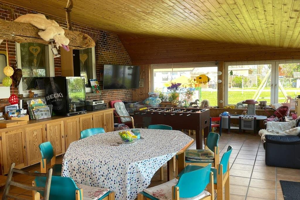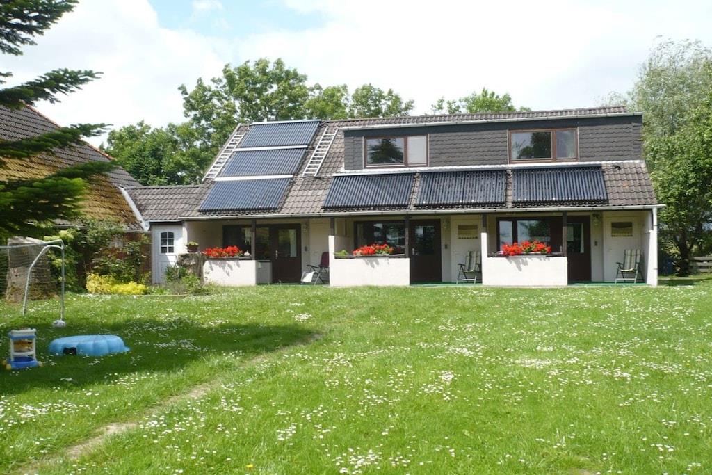 Vores ferielejlighed (100 meter fra Nordsøen) har en separat indgang med en overdækket terrasse. Stueetagen har en stue-spisestue og et fuldt udstyret køkken. Et badeværelse med regnbruser, tv og stereoanlæg. Ovenpå er der et soveværelse med en dobbeltseng og et andet værelse med to senge (også til voksne). En barneseng og højstol er gratis til rådighed. Et stort, overdækket grønt område til solbadning eller leg for børnene (legeredskaber til rådighed) støder op til terrassen. En stor vinterhave er til rådighed til leg eller socialt samvær i dårligt vejr. Der er også en grillplads med havemøbler og grilludstyr. En vaskemaskine og tørretumbler er også tilgængelige. Wi-Fi internetadgang er tilgængelig efter anmodning.
