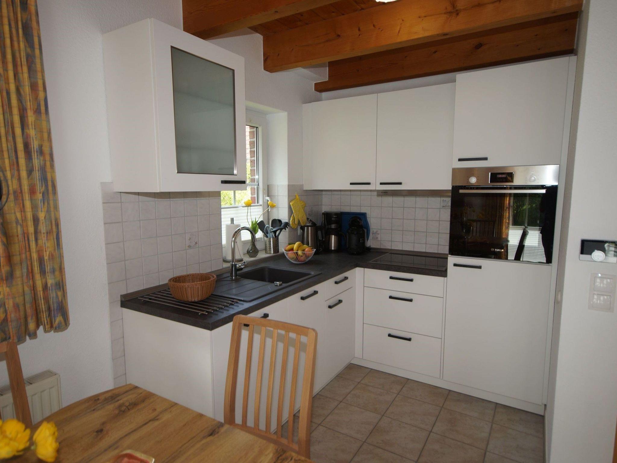 Im Erdgeschoß befindet sich der Wohn-, Essbereich mit Küche. Diese ist komplett ausgestattet mit z. B. Spülmaschine, Backofen sowie einer Tassimo und Kaffeemaschine. Des Weiteren befinden sich im Erdgeschoß eine Gästetoilette und ein kuscheliges Schlafzimmer mit zwei Betten.