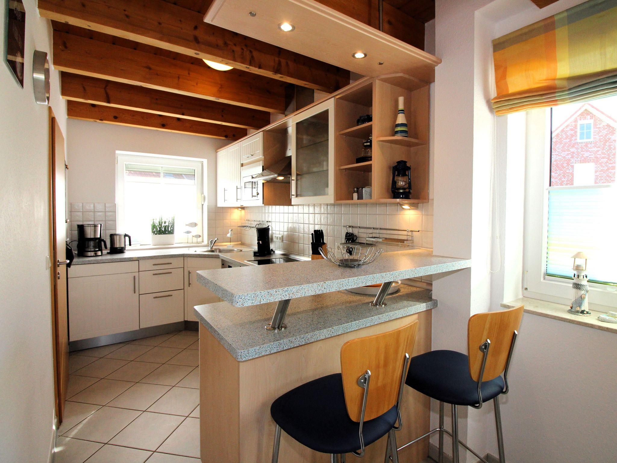 Die Küche ist sehr hochwertig mit Kühlschrank und Gefrierfach, Backofen mit Ceranfeld, Dunstabzugshaube, Spülmaschine und einer eingebauten Kombi-Mikrowelle ausgestattet. In unserer Küche finden Sie über Kaffeemaschine, Senseo-Pad-Maschine, Wasserkocher, Toaster, Eierkocher, Mixer ausreichend Geschirr, Gläser und Bestecke sowie Bügeleisen, Bügelbrett+Wäscheständer einfach alles für Ihr Wohlbefinden.