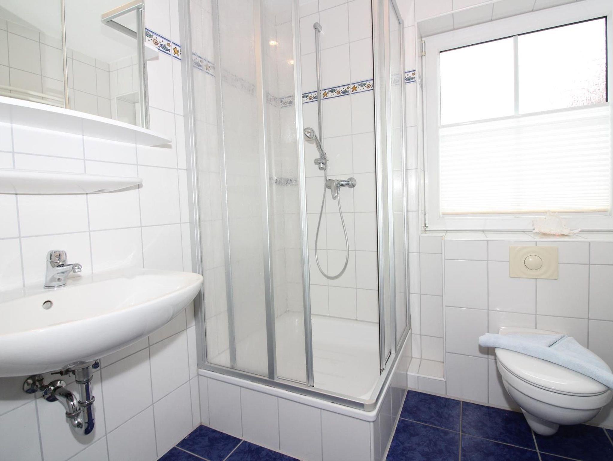 Mit Dusche, Handtuchheizkörper und Fön