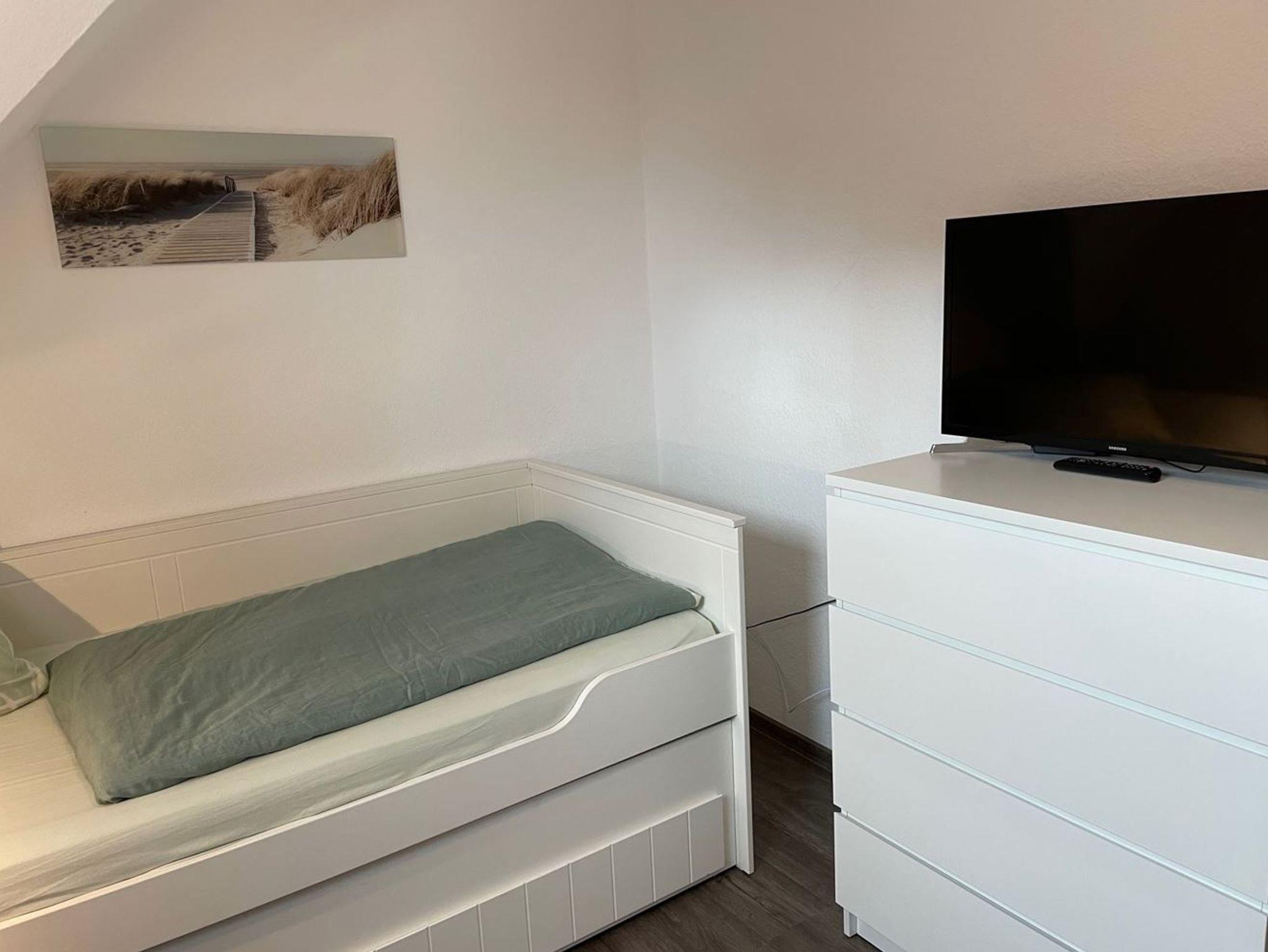 Im 2. Schlafzimmer befinden sich zwei getrennte Betten (je 90 cm x 200 cm), die beide zum Ausziehen sind.