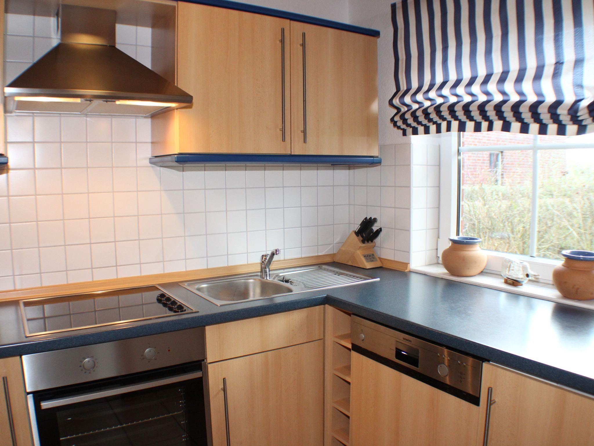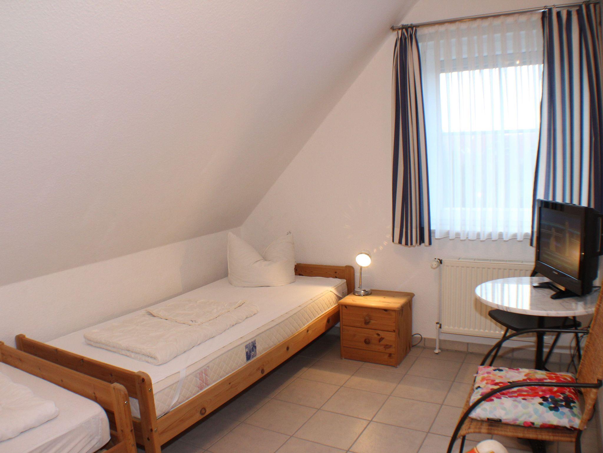 Sie wohnen in einem Ferienhaus für bis zu 5 Personen mit drei Schlafzimmern auf ca. 80 m² Wohnfläche im Erd- und Obergeschoss sowie Dachboden. Ein Schlafzimmer (Rolläde/ Insektenschutz vorhanden) mit Doppelbett, ein Schlafzimmer (Rolläde/ Insektenschutz vorhanden) mit getrennten Betten sowie einem ausgebauten und möblierten Dachboden (ein Bett). Wohn-/Essraum mit bequemer dreisitziger Couch und einem Sessel, separater Essplatz, voll ausgestatteter Küchenbereich mit Geschirrspüler, Waschmaschine mit integriertem Trockner, Mikrowelle, Dusche/WC, zusätzliches WC, Terrasse, Kabel-TV.