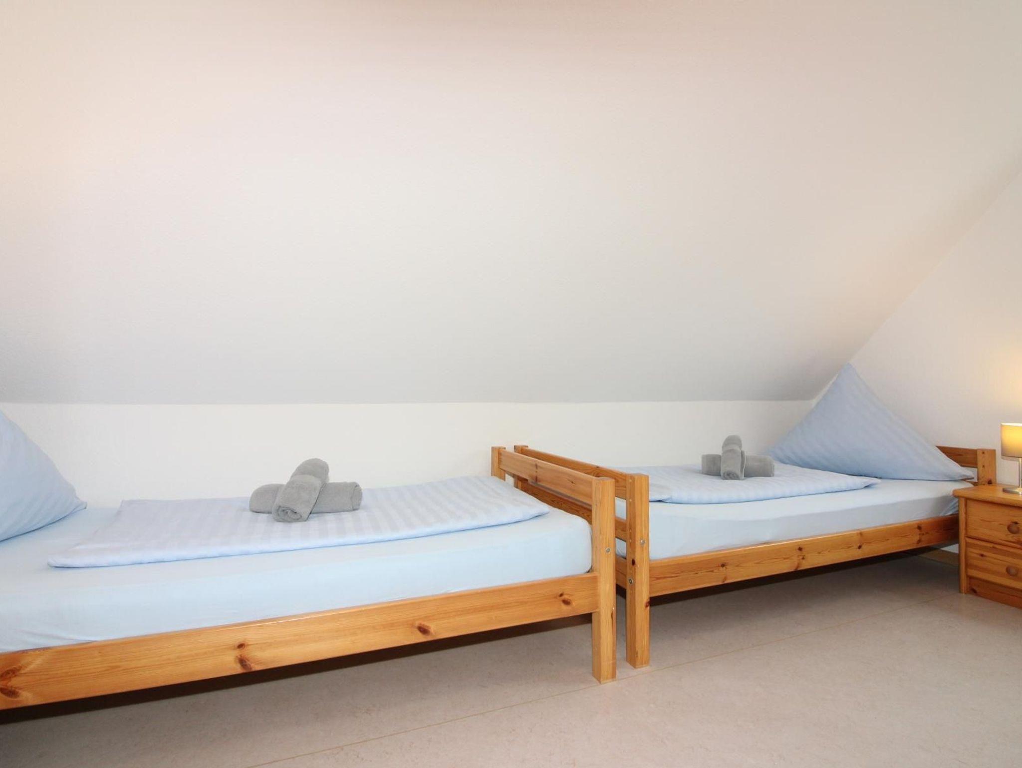 Einzelbetten, ein Schlafzimmer mit Doppelstockbetten.