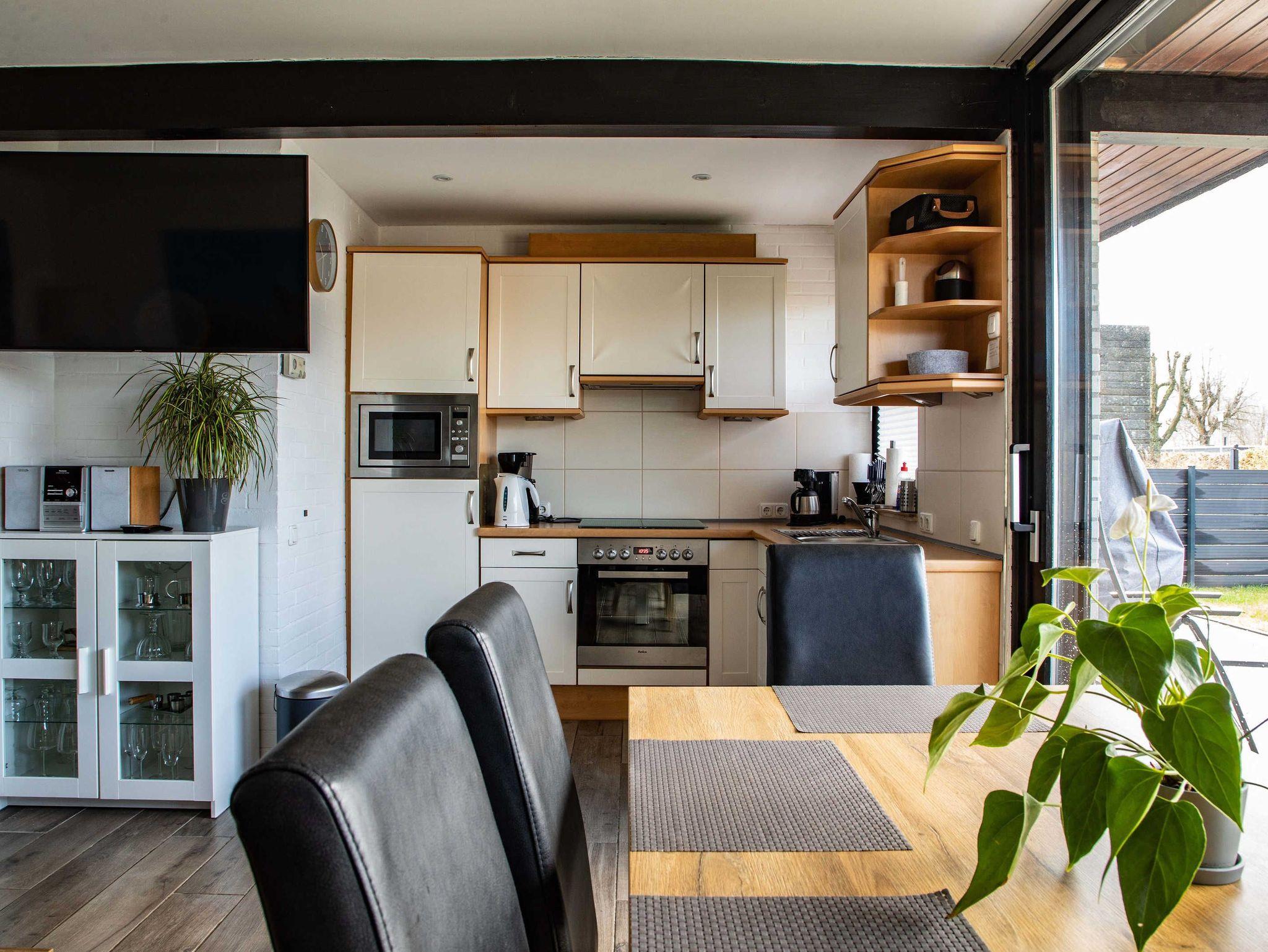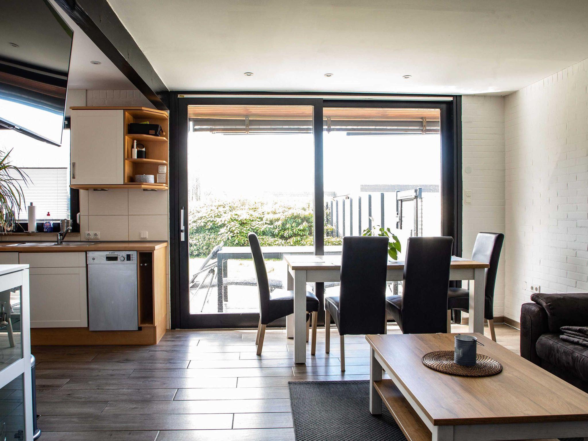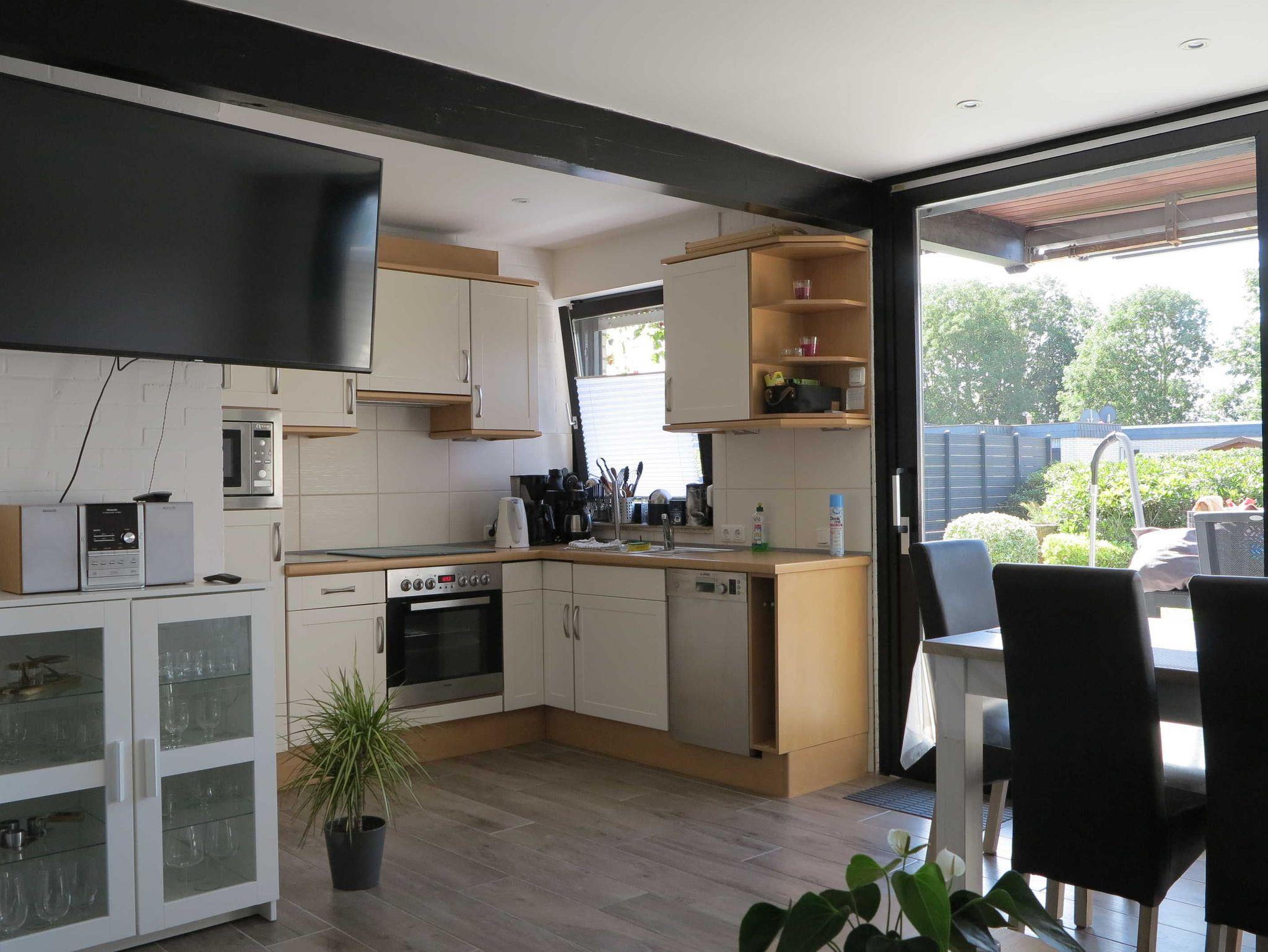 Neben einer voll ausgestatteten Küche erwartet Sie ein großer und offener Wohnbereich mit Internet und stufenlosem Übergang zur Süd-Terrasse sowie ein Stellplatz direkt am Haus. Eine Fußbodenheizung erwärmt das gesamte, durchgefließte Haus. Zum Garten hin gelegen ist eine ca. 30 qm² große Terrasse mit nagelneuen Sitz- und Liegemöbeln, ein Grill sowie ein Sonnenschirm im windgeschützten Außenbereich vorhanden. Außerdem gibt es eine neue, ausfahrbare Markise und einen Strandkorb. Das gesamte Ferienhaus ist neu ausgestattet, modern eingerichtet und wenn doch einmal etwas fehlen sollte, wird Abhilfe geleistet.