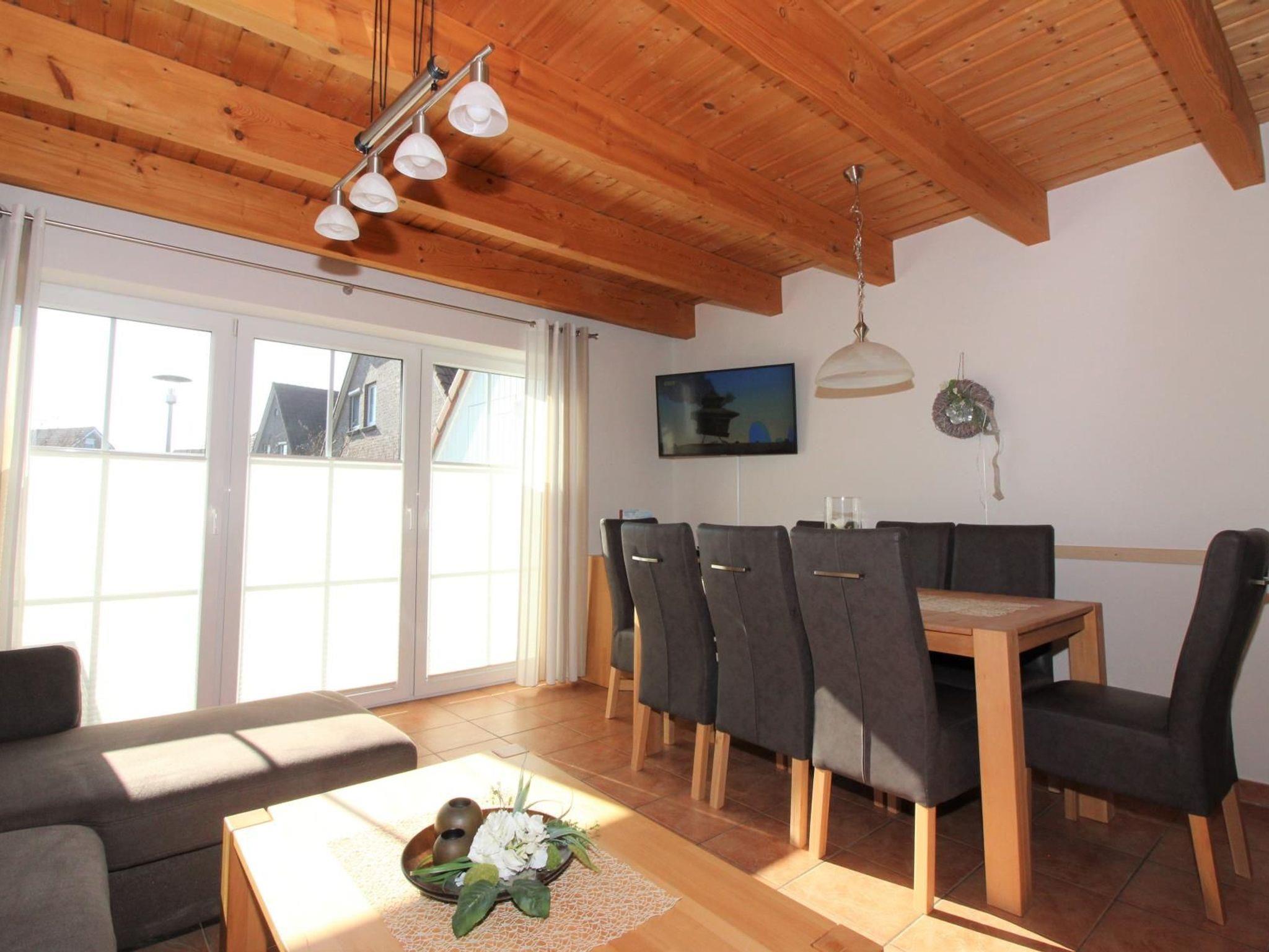 Sie wohnen in einem Haus für bis zu 8 Personen, welches ca. 100 m vom Deich entfernt ist. Das Ferienhaus verfügt über eine Wohnfläche von ca. 80 m², die sich auf drei Etagen erstreckt. Im Erdgeschoss befindet sich ein großer Wohn-/Essbereich, ein Tageslichtbad und ein Abstellraum. Zudem können Sie den Garten (mit Rasenfläche) inkl. der Terrasse nutzen.