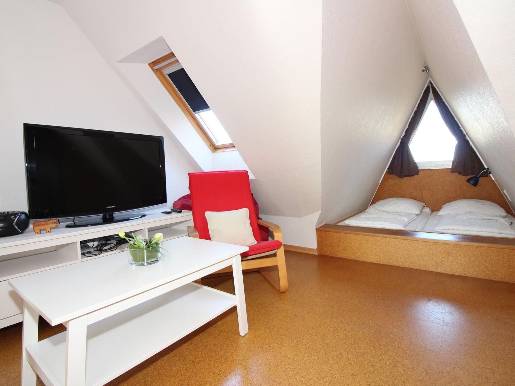 Spitzboden (Wohn- und Schlafbereich): Flachbildfernseher, Sitzecke
