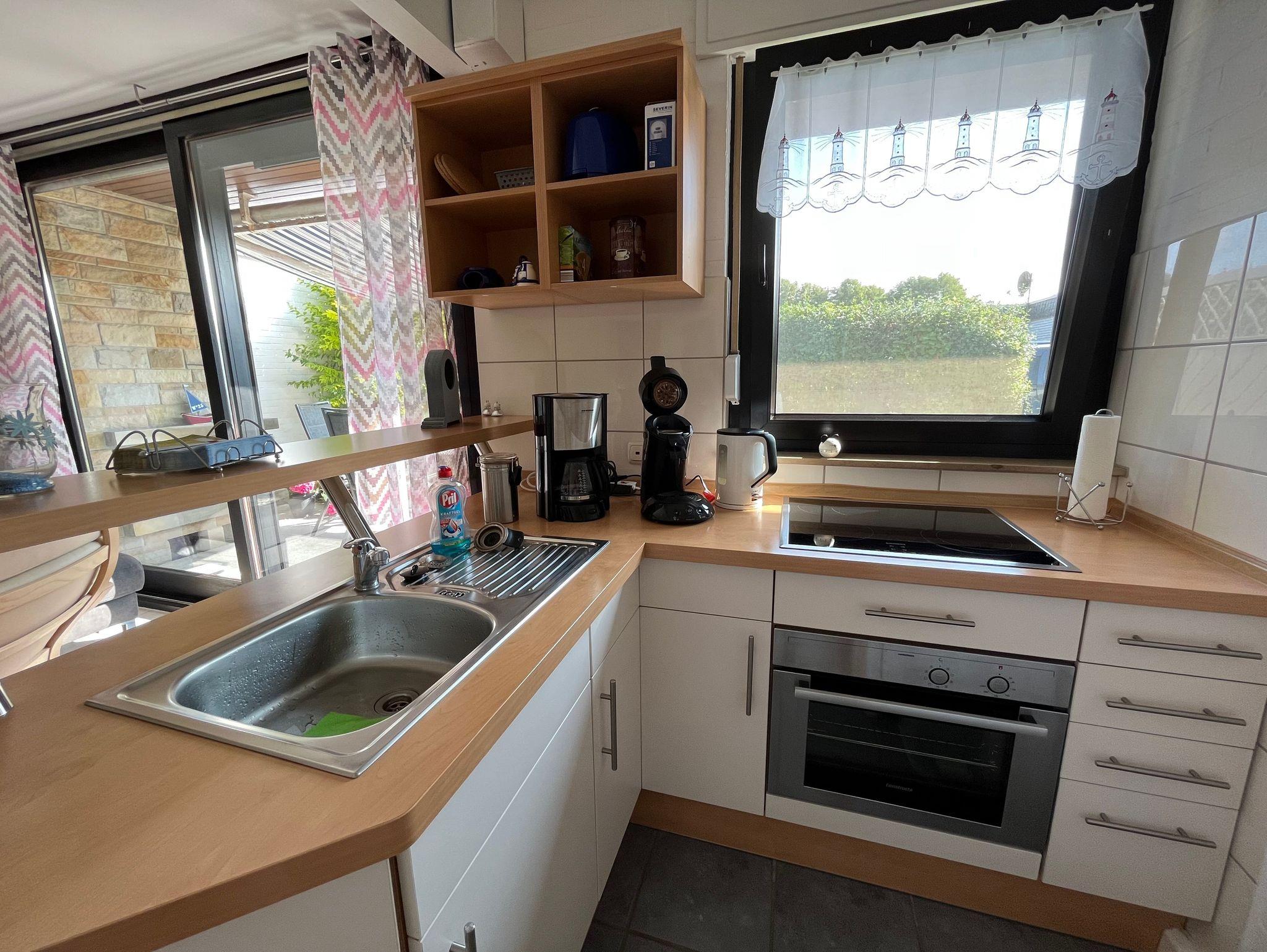 Das Ferienhaus Fietje Huus ist folgendermaßen ausgestattet: Im Wohnzimmer finden Sie ein gemütliches Sofa, einen Beistelltisch und einen Esstisch mit vier Stühlen vor. Für die Unterhaltung gibt es einen Fernseher, ein Radio, eine CD-Anlage und Internet. Eine extra für Sie gestaltete Sammlung mit Veranstaltungs- und Gastronomietipps liegt für Sie bereit. Das Elternschlafzimmer ist mit einem Doppelbett und einem geräumigen Kleiderschrank, der über einen eingebauten Spiegel verfügt, ausgestattet. Für genügend Licht sorgen zwei festinstallierte Wandlampen, die jeweils an den Seiten der Betten befestigt sind. Jeder Schlafplatz verfügt über ein Kissen, eine Steppdecke und eine wohlig warme Kuscheldecke. Im Kinderzimmer stehen zwei 2 Einzelbetten und ein Kleiderschrank. Zwei separat angebrachte Leselampen sorgen für genug Licht an Ihrem Schlafplatz. Zudem verfügt jeder Schlafplatz über ein Kissen, eine Steppdecke und ebenfalls wohlig warme Kuscheldecken. Die Küche ist mit etlichen Geräten wie einem Kühlschrank inklusive Eisfach, einem Ofen (Ceranfeld) mit 4 Kochstellen, einem Backofen, einer Microwelle sowie einer Geschirrspülmaschine ausgestattet. Eine Kaffeemaschine, eine Kaffeepadmaschine, ein Toaster, ein Wasserkocher und ein Mixer dürfen natürlich auch nicht fehlen. Zudem finden Sie bei uns ein komplettes Geschirrset (für unsere kleinen Gäste steht Kindergeschirr und -besteck bereit). Pfannen, Töpfe, Messbecher Sets, Wachsdecke sowie verschiedene Kochutensilien wie Kochlöffel, Messer, Schere, Dosenöffner, Rührschüssel etc. werden natürlich auch für Sie bereit gestellt. Gläser sind in verschiedenen Ausführungen vorhanden (Wasser-, Bier-, Wein-, Sektgläser und Becher). Das Badezimmer besteht aus einer geräumigen Dusche, einem Waschbecken sowie einem WC. Über dem Waschbecken hängt ein Spiegel inklusive Ablage, der von einer Lampe beleuchtet wird. Für unsere kleinen Gäste steht ein Kinderfußhocker zur Verfügung. Das Badezimmer ist mit einem Fenster und einer Heizung, die extra zur Handtuchtrocknung ausgerichtet ist, ausgestattet. Der liebevoll gestaltete Garten (ca.200qm) ist mit einer teilweise überdachten Terrasse angelegt. Für eine erholsame Zeit stehen Ihnen hier eine Markise, Gartenstühle sowie bequeme Gartenliegen mit hochwertigen Polstern, ein großer Gartentisch und ein Holzkohlegrill zur Verfügung. Im Haushaltsraum finden Sie neben einer Waschmaschine einen Hochstuhl für Kleinkinder, ein Kinderbett, einen Staubsauger, einen Wäscheständer und Putzutensilien (Wischer, Besen, Kehrblech). Zum Grundstück gehört auch ein Stellplatz auf unserem Gemeinschaftsparkplatz des Aidaparks, den Sie kostenlos nutzen können. Das Ferienhaus Fietje Huus ist mit einer Gaszentralheizung ausgestattet. Mit den neu eingebauten Fenstern und Rollos sowie der neuen Eingangstür ist das Haus nicht nur sicher, sondern auch gut isoliert. Das Internet wird über das im Ferienpark installierte Freifunksystem betrieben.