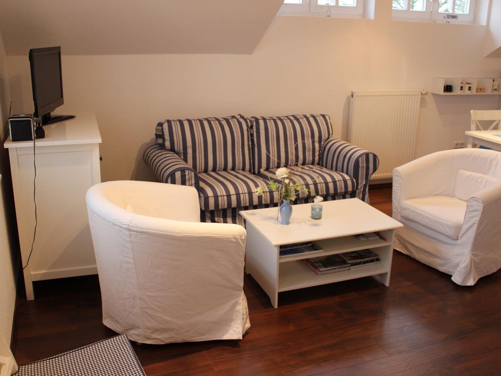 Die Ferienwohnung Anna liegt im Obergeschoss eines Reetgedeckten Hauses direkt in dem schönen Wurtendorf Sillens. Im Eingansbereich finden Sie die Garderobe und eine Ablage für die Schuhe. Eine Treppe führt direkt in die hell und im Landhausstil gemütlich eingerichtete Ferienwohnung mit einer Sitzecke mit Sat-TV und Radio und Schlafcouch, einer vollausgestatteten Küche (Kühlschrank, Backofen mit Ceranfeld, Geschirrspüler, Kaffeemaschine, Kaffeepadmaschine, Toaster, Wasserkocher, Sandwichtoaster, Raclette, Mixer und Pürierstab), ein Schlafbereich mit Doppelbett (Allergikerbetten, Bandscheibenmatrazen) und einem Bad mit großer Dusche mit Glastür, 2 Waschtischen und WC.