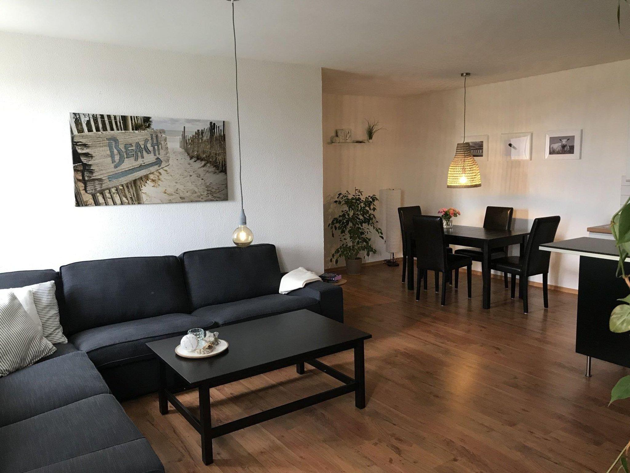 Es gibt ein Schlafzimmer mit Doppelbett und ein Wohn-/Esszimmer mit offener Küche, ein zweites Schlafzimmer (nicht als klassisches Kinderzimmer gestaltet) mit einem französischen Bett (1,20) und ein Duschbad.