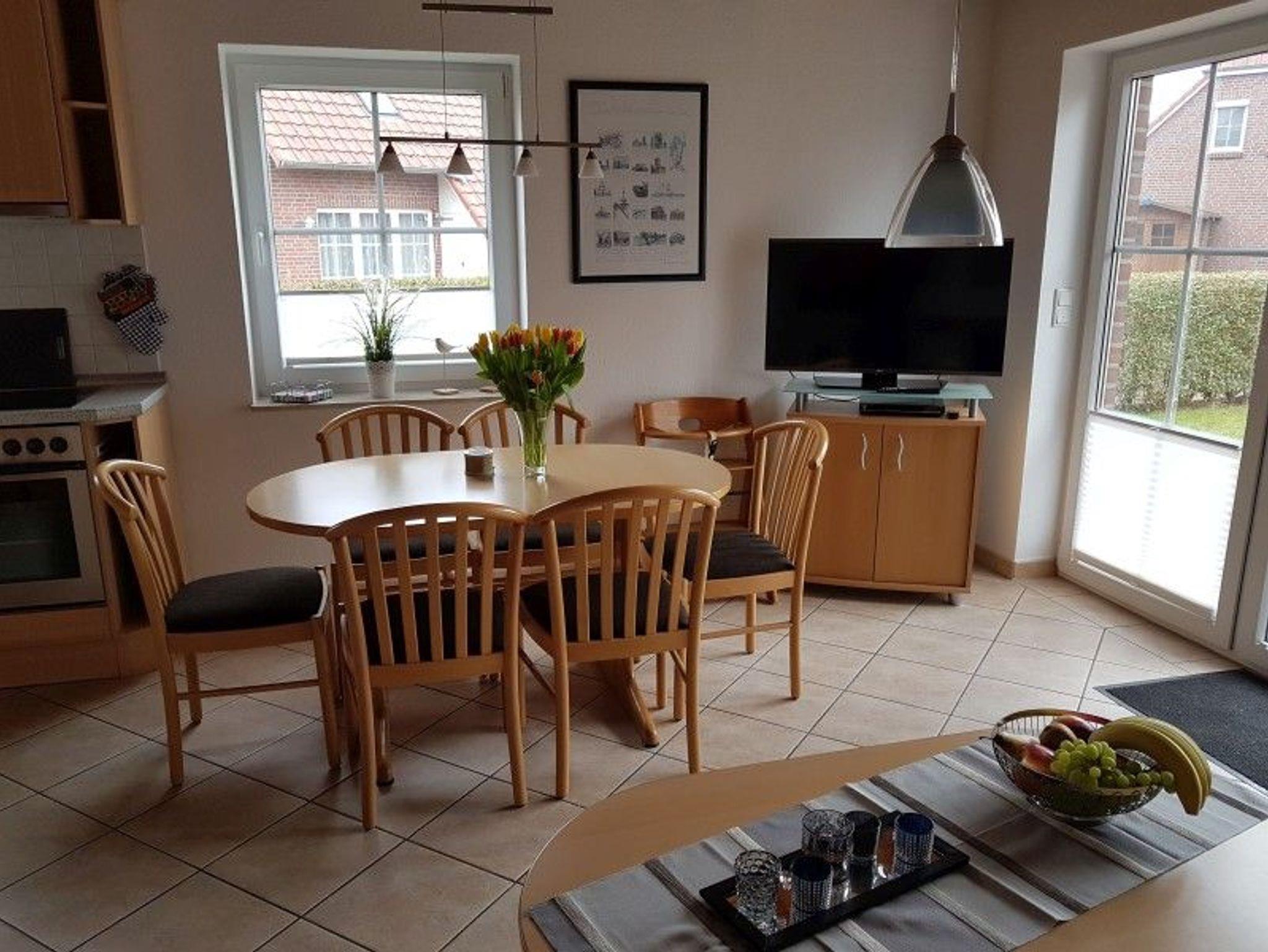Im großzügigen Wohnraum ist eine offene Küche integriert, die alles bietet, was die Hausarbeit auch im Urlaub erleichtert: Multifunktionelle Mikrowelle, Herd mit Cerankochfeld und Backofen, Kühlschrank mit Gefrierabteil sowie eine Geschirrspülmaschine.