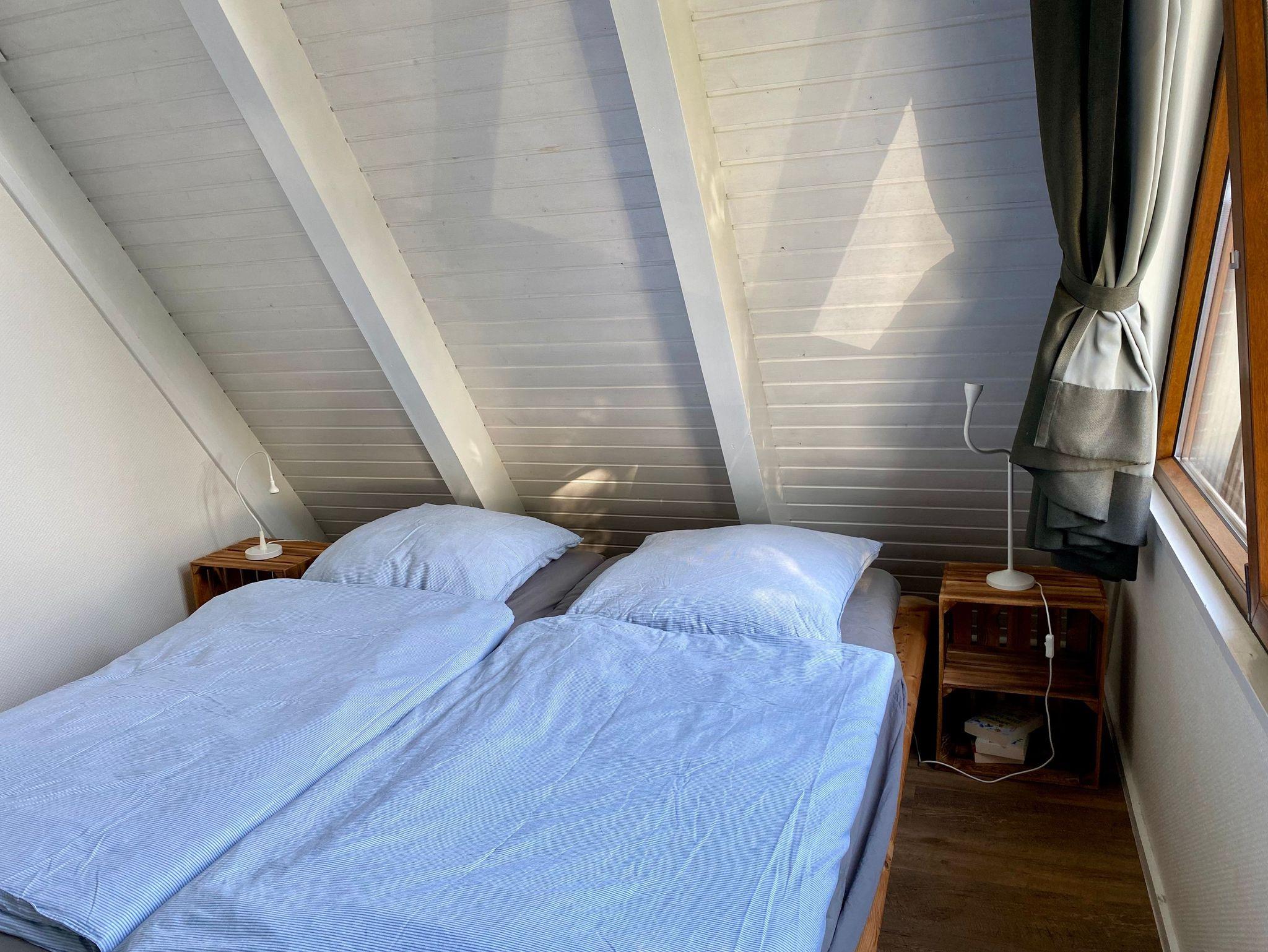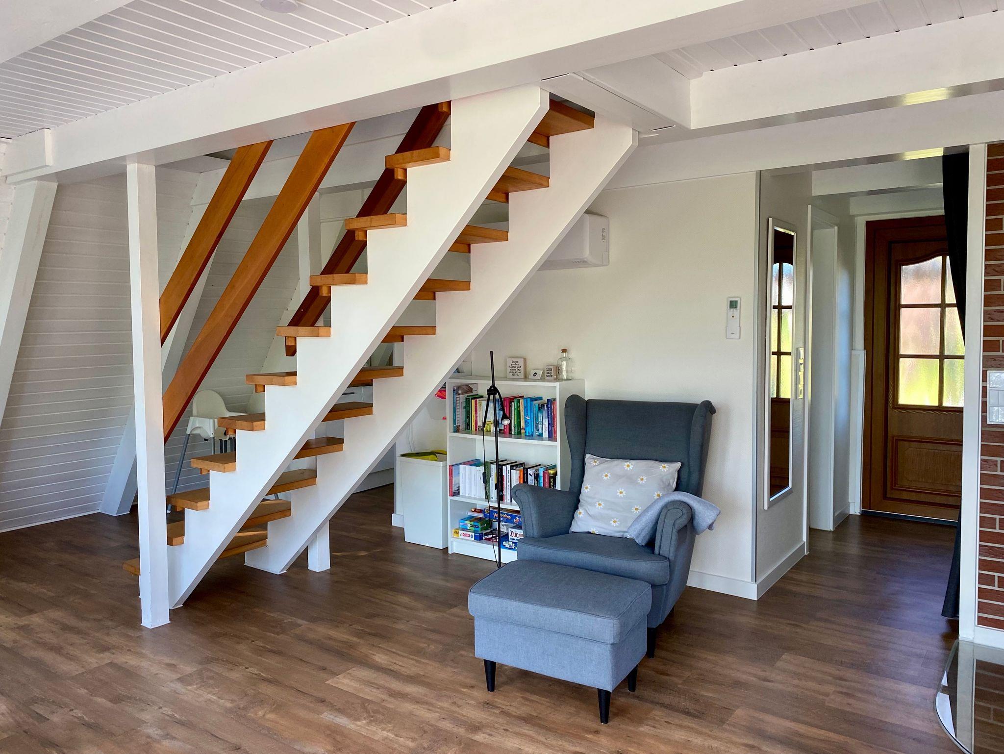 Über eine solide Treppe erreicht ihr das Obergeschoss, hier befinden sich zwei Schlafzimmer