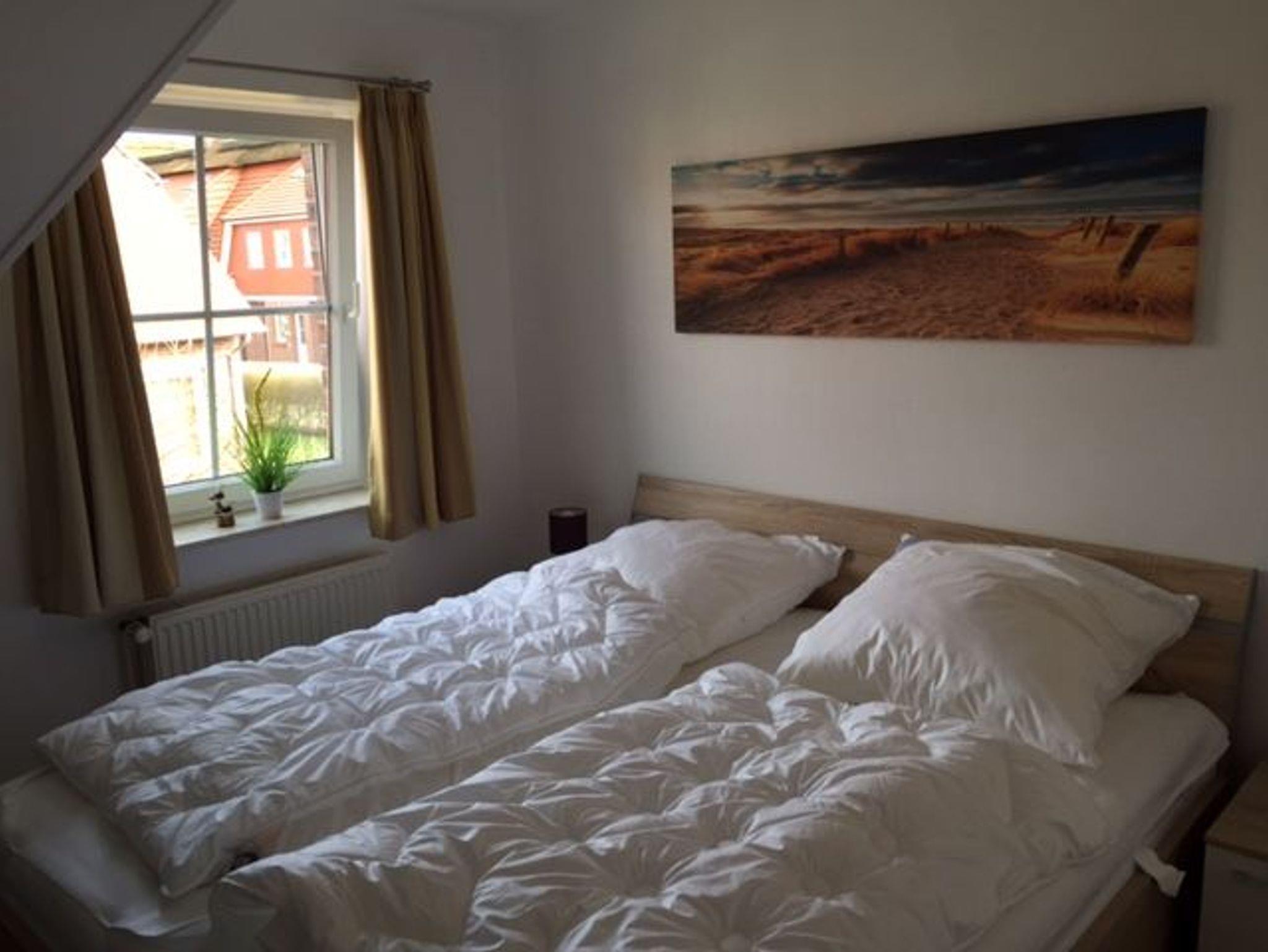 Im 1. OG sind das Bad mit Wickelkommode, das Elternschlafzimmer mit Doppelbett und ein Kinderzimmer mit zwei Einzelbetten und Unterschubausziehbett. Beide komplett abdunkelbar und mit Fliegengitter.