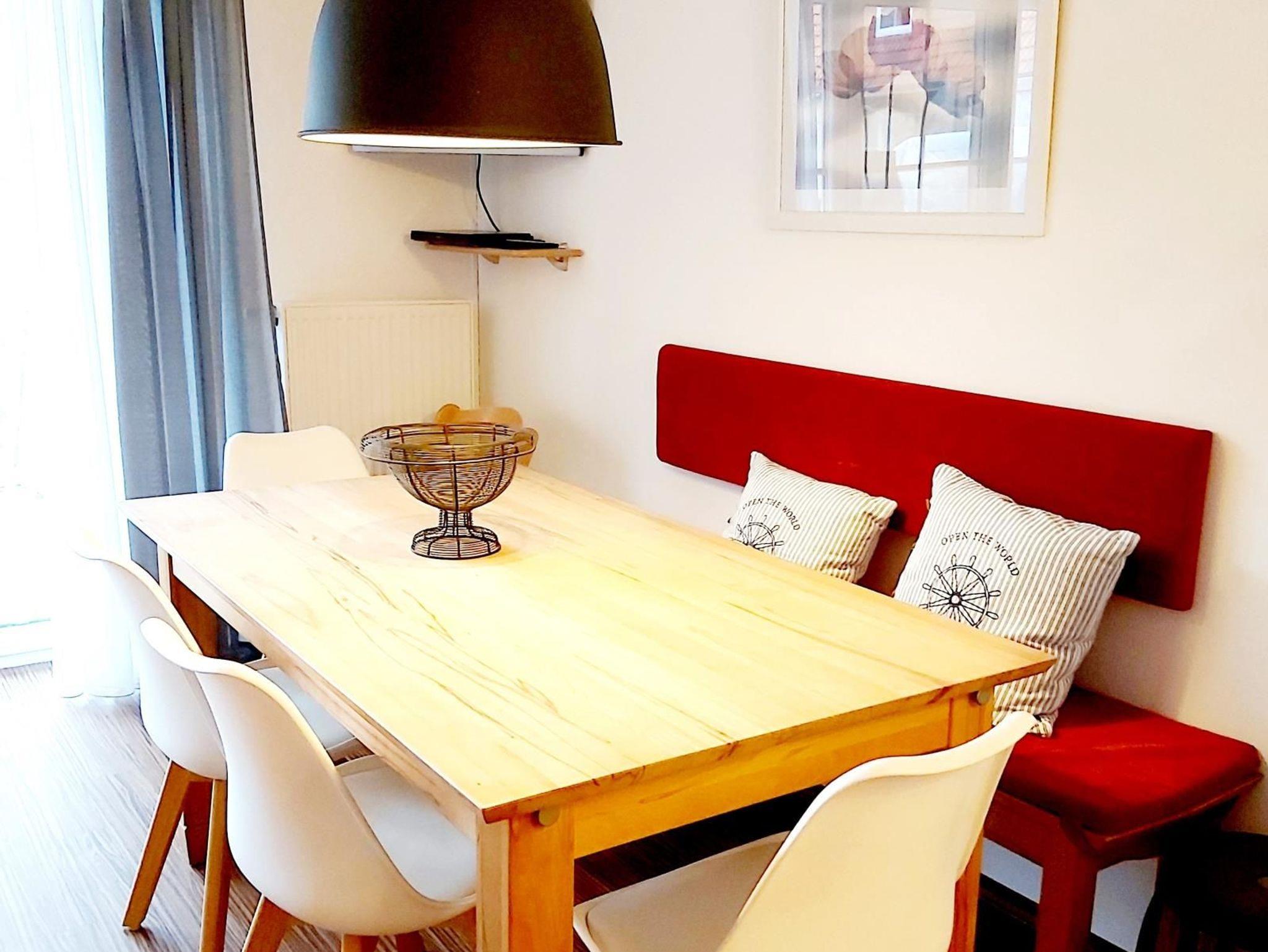 Alles für den kleinen und großen Hunger können Sie in der im Wohnraum integrierten Küche zubereiten. Dabei stehen Ihnen ein 4-Plattenherd, Backofen, Mikrowelle, Kühlschrank mit Gefrierfach, Geschirrspüler, Kaffeemaschine, Senseo-Kapselautomat, Toaster, Waffeleisen, Kuchenformen, Wasserkocher und viele weitere Küchenutensilien hilfreich zur Seite.