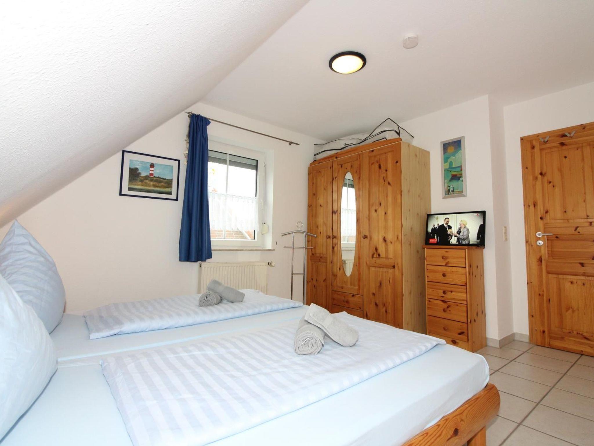 Ein Schlafzimmer mit großem Doppelbett 200 cm x 200 cm, ein Schlafzimmer mit getrennten Betten und ein Schlafzimmer mit Kinder-Etagenbett.