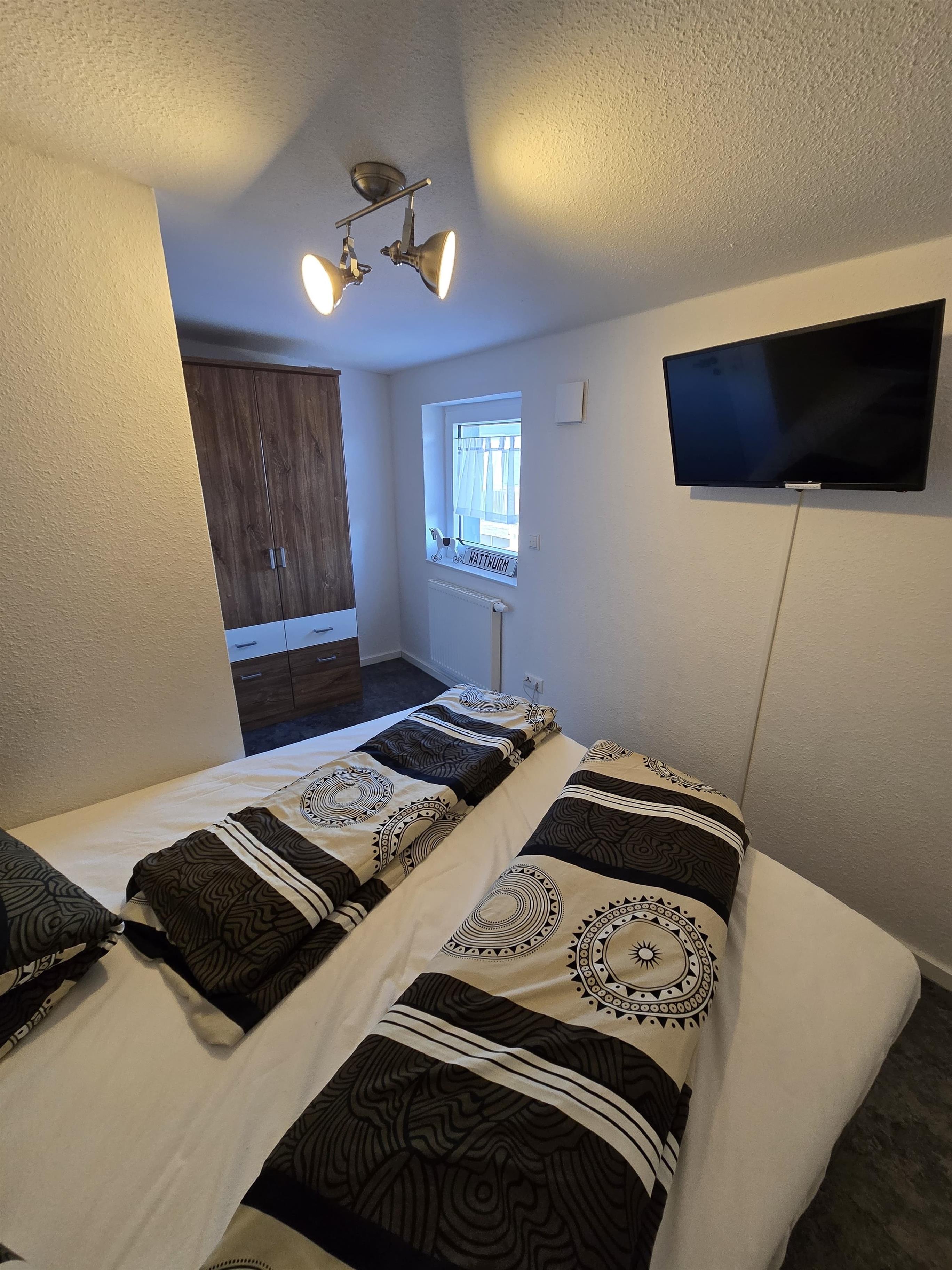 In der unteren Etage mit einem offenen Wohn/Essbereich mit Sofa und einem Sessel zum relaxen, einem gr. Flachbildschirm, einem Kaminofen für behagliche Wärme, einer vollausgestatteten Küche (Kaffeemaschine, Wasserkocher, Toaster, Geschirrspüler, Backofen etc), einem Gäste-WC, kl. Abstellraum und in der oberen Etage befinden sich ein Schlafzimmer (Boxspringbett 180 x 200) mit wunderbarem Balkon und Blick auf den Deich und einem Kinderzimmer (Boxspringbett 160 x 200), im SZ und Gästezimmer gibt es jeweils einen Flachbildschirm), ein Bad mit eigener Sauna. Geniessen Sie nach einem Saunagang die Ruhe und den Ausblick über Felder und Wiesen bis hin zum Deich.