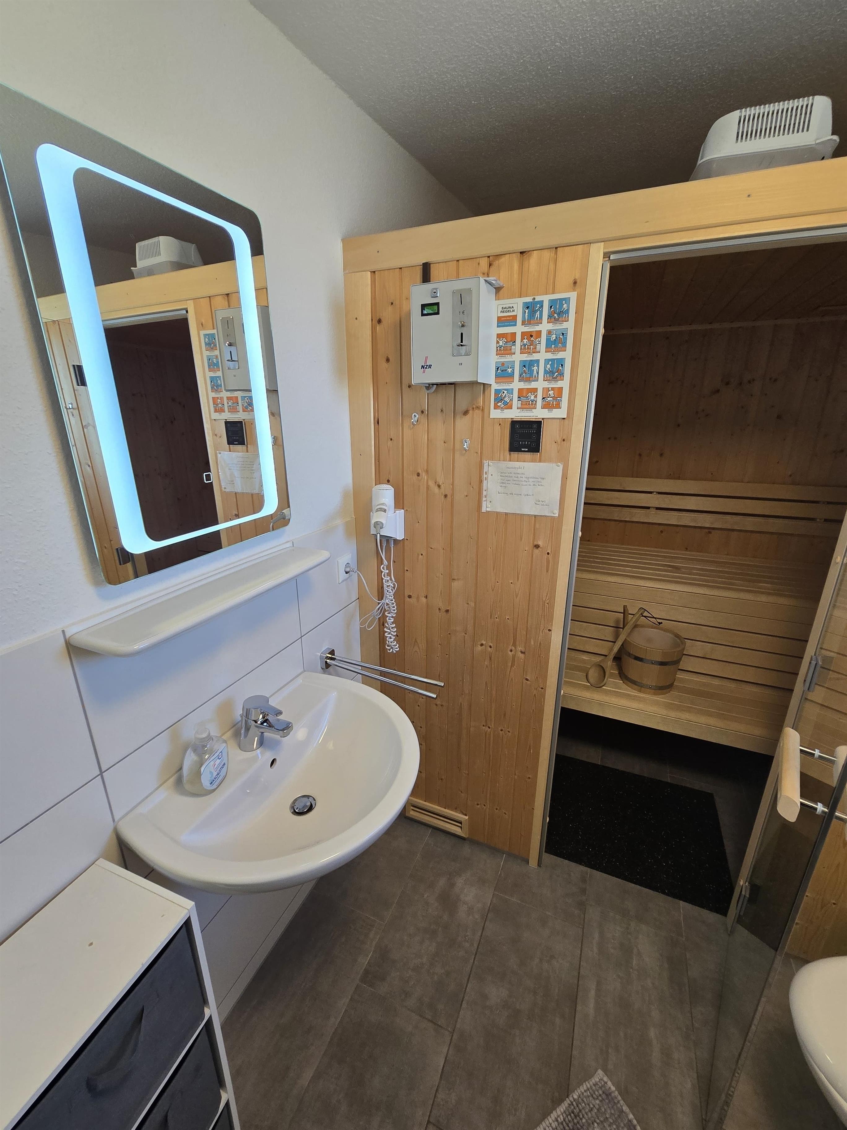 Sauna gegen Gebühr, 30 min , 1 Euro, es ist ein Münzautomat vor der Sauna angebracht, dieser wird mittels den Euromünzen aktiviert und betätigt die Sauna.