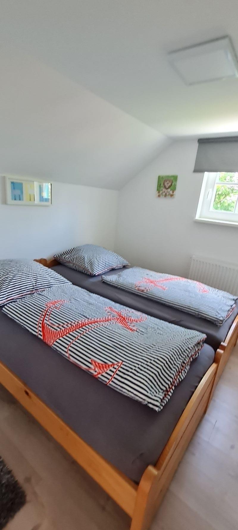 Im Erdgeschoss befindet sich ein grosser Wohn/Essbereich mit einer Einbauküche, die komplett für 4 Personen ausgestattet ist. Unter anderem ist die Küche ausgestattet mit einem Geschirrspüler, Mikrowelle, E-Herd/Backofen und vieles mehr. Des Weiteren erwartet Sie im Erdgeschoss ein Bad mit Dusche und ein Schlafzimmer mit Doppelbett.