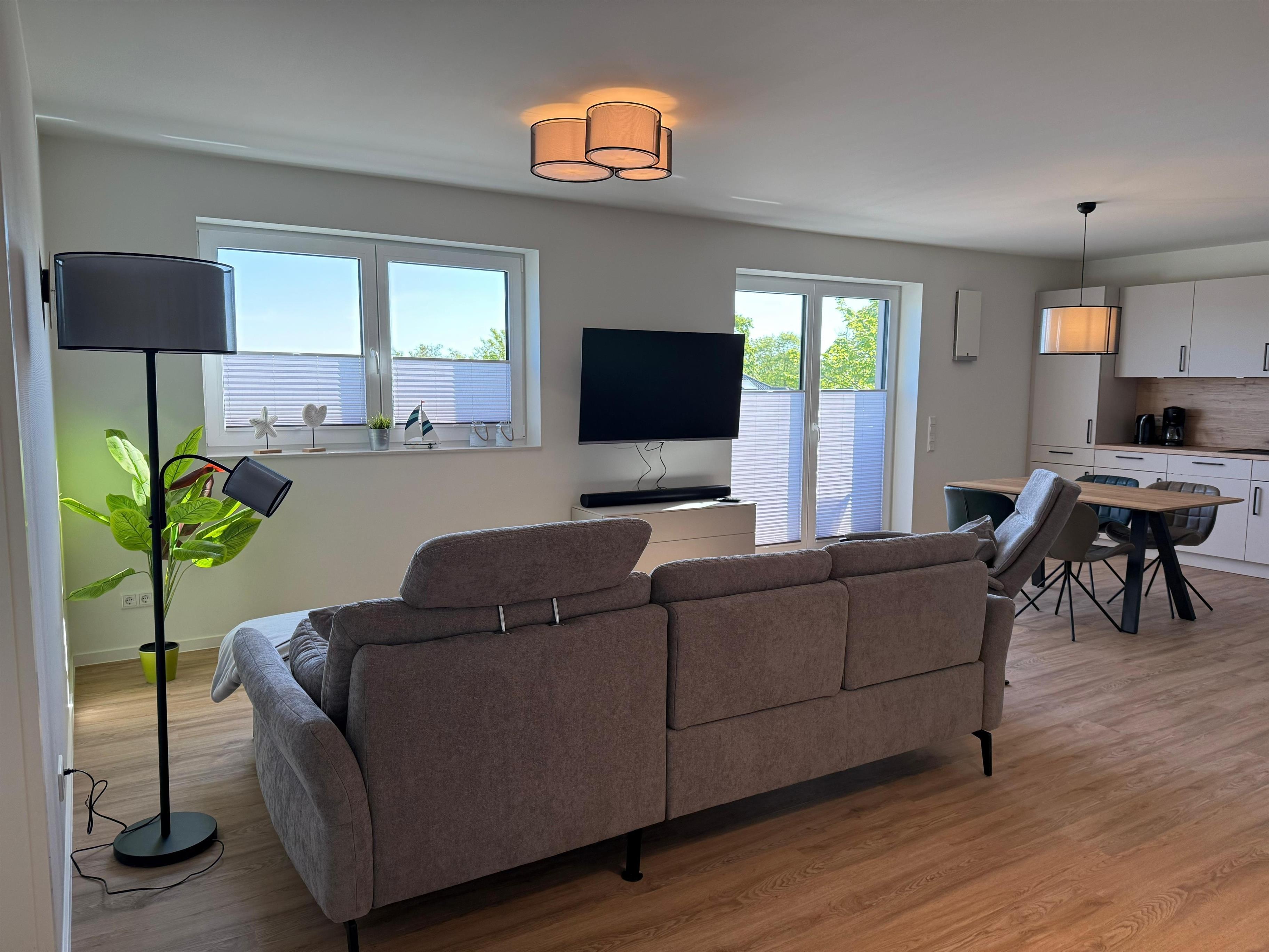 In den 2 Schlafzimmern, welche alle mit einem Boxspringbett (Matratzengröße für Bettlaken 180cm x 200cm) ausgestattet sind, finden bis zu 4 Erwachsene gemütlich Platz. Ein Reisebett sowie ein Hochstuhl für kleine Gäste ist in der Wohnung vorhanden. In beiden Schlafzimmern ist ein Smart TV vorhanden, sowie im Wohnzimmer.