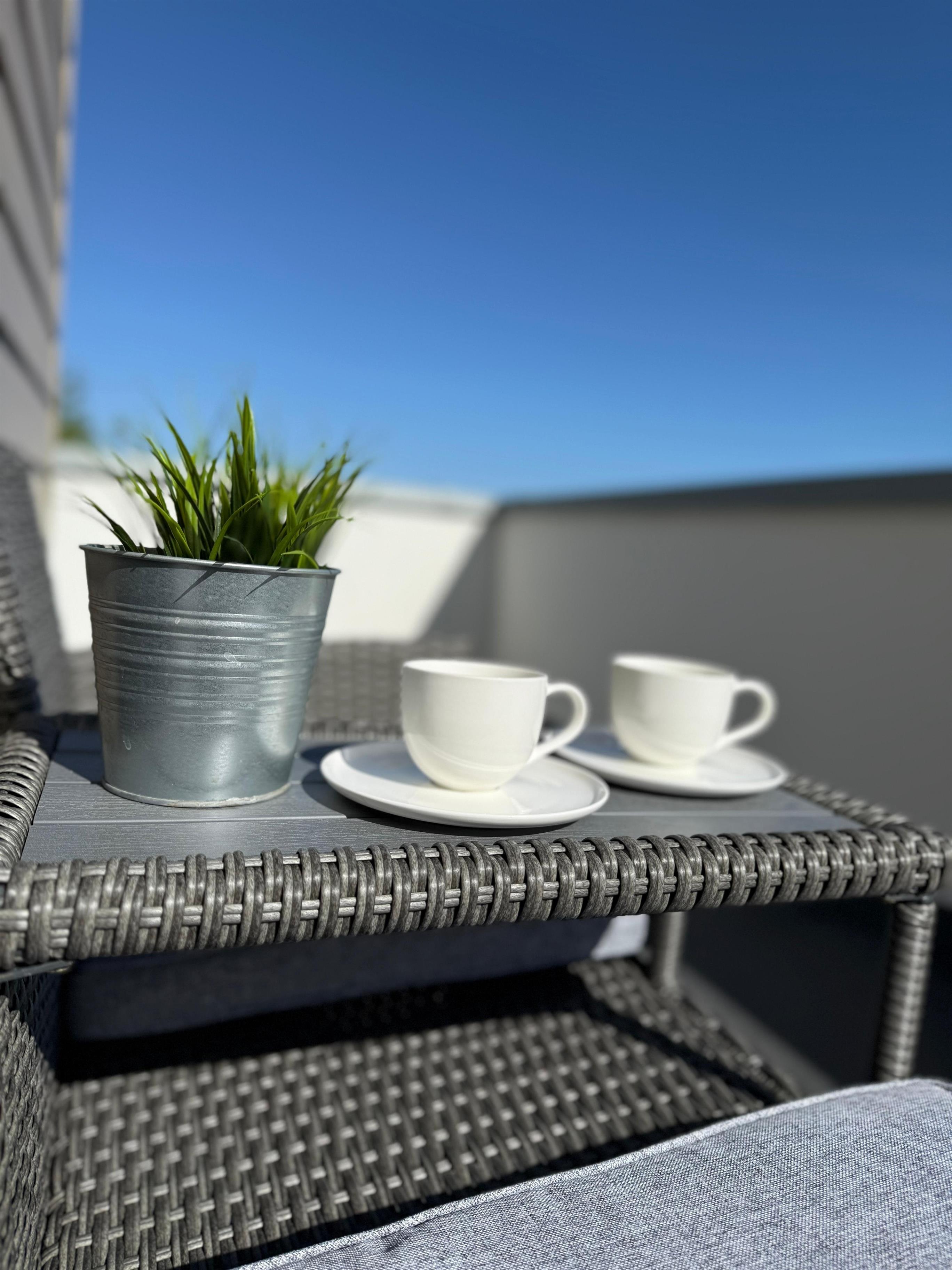 Ein echtes Highlight ist die großzügige Dachterrasse, die euch einen wunderschönen Panoramablick bietet. Hier könnt ihr die frische Seeluft genießen, in der Sonne entspannen oder den Abend gemütlich ausklingen lassen.