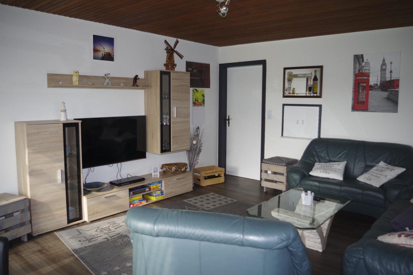 Für besondere Wohlfühlmomente sorgt das Wohnzimmer, das mit einer bequemen Sofaecke und einem Flachbild-TV ausgestattet ist – perfekt für entspannte Filmabende.
