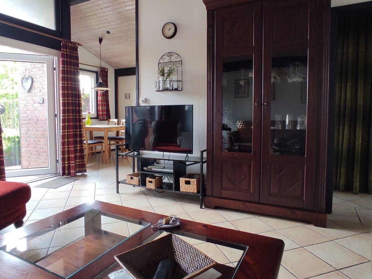 Die Couchecke ist gemütlich und gerade richtig, um einen entspannten Urlaub zu verbringen. Die Terrasse im Anschluss an die großen Panorama-Fensterscheiben im Wohnzimmer geht über in den Garten und die Liegewiese. Sämtliches Mobiliar ist neuwertig. Eine Sat-TV-Anlage mit einem 42-Zoll – Flachbild-Fernseher ist ebenso selbstverständlich wie eine Stereoanlage mit CD.