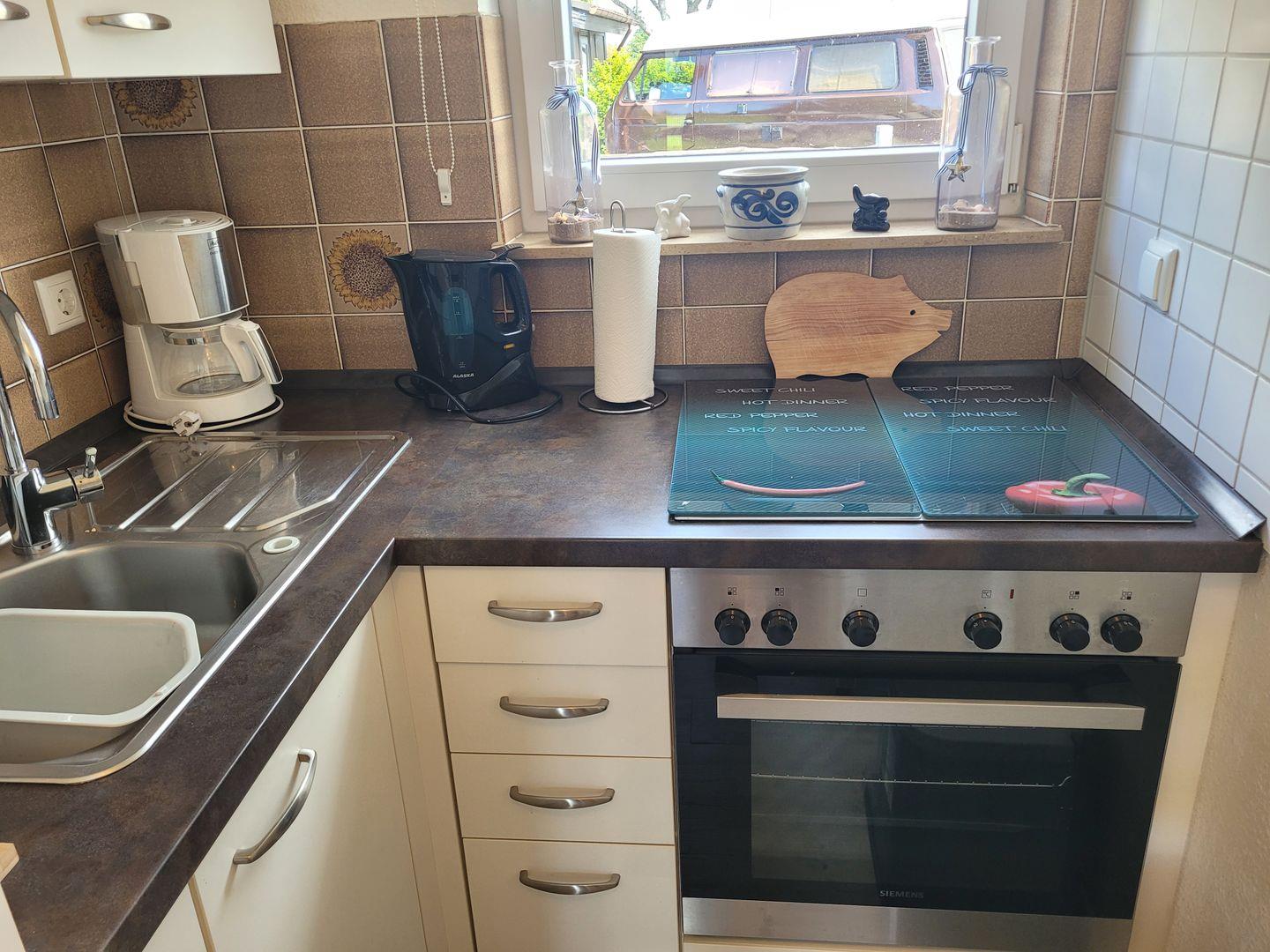 Die geschlossene Küche lässt keine Wünsche offen: sie ist mit Ceranherd, Backofen (Elektroanschluss), Mikrowelle, Kühl- und Gefrierschrank (Gefrierfach im Kühlschrank), Wasserkocher, Toaster, Kaffeemaschine, Geschirr, Besteck und sämtlichen Küchenutensilien ausgestattet. Selbstverständlich ist auch eine Erstausstattung vorhanden. Staubsauger, Wäscheständer und weitere Haushaltshelfer stehen Ihnen zur Verfügung.