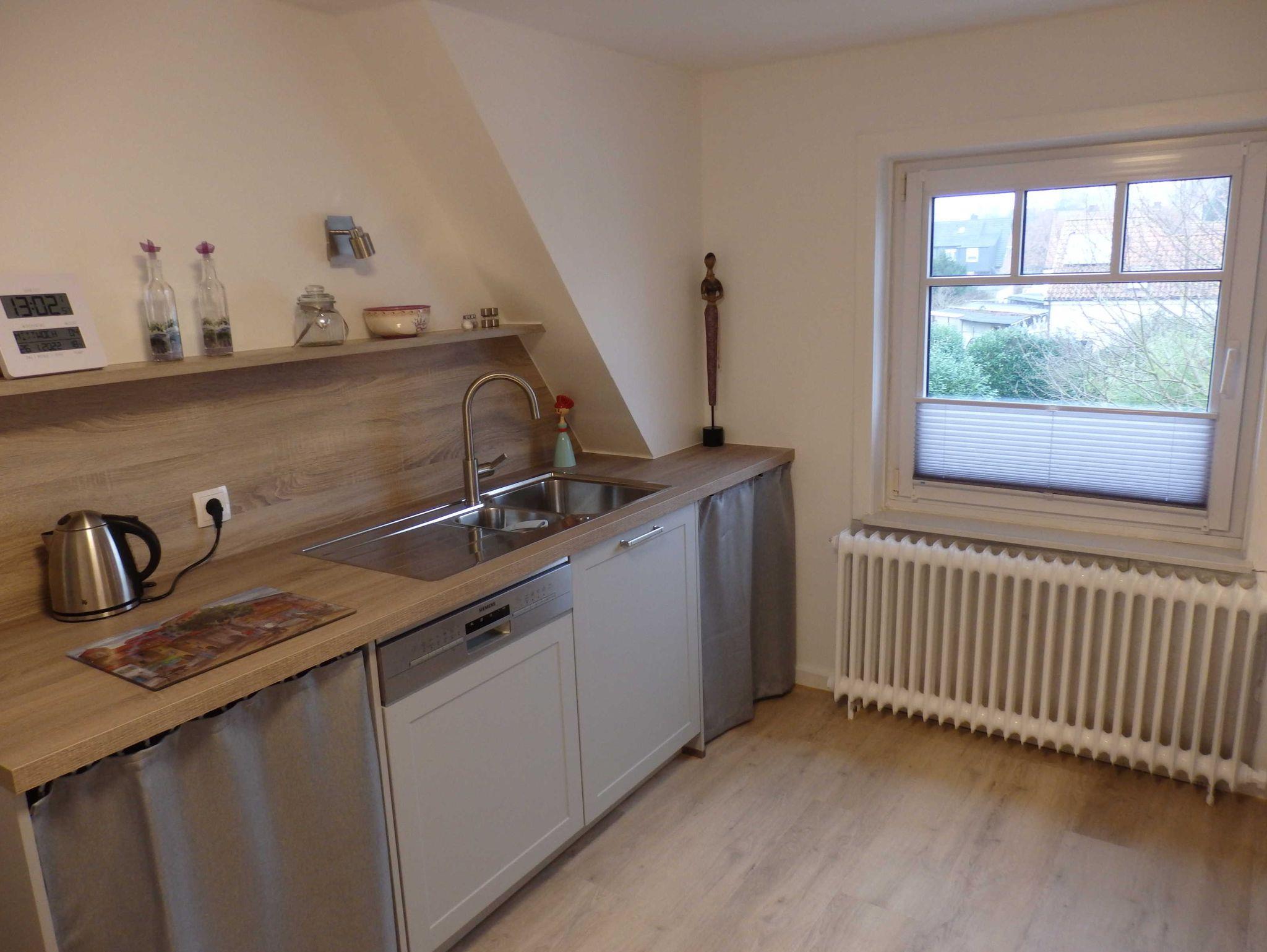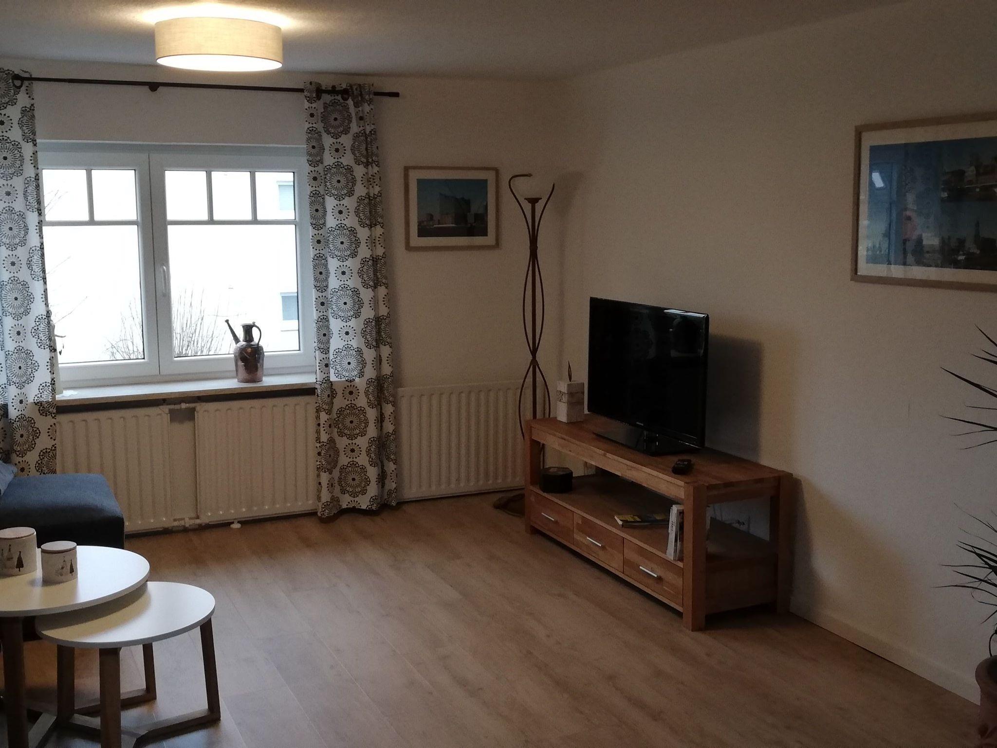 Helle und frisch renovierte 60 qm Ferienwohnung in Altstadtnähe mit Kirchturmblick. Die Wohnung verfügt über eine komplett ausgestattete neue Küche, hat ein separates Schlafzimmer mit Außenjalousie und ein großes, gemütliches Wohn- und Esszimmer mit einem Schlafsofa. Die Wohnung liegt im ersten Stock eines Doppelhauses, zentrumsnah zur Buxtehuder Innenstadt, am Rande des Alten Landes, das man ideal von hier mit dem Fahrrad erkunden kann. Es gibt eine Garage, in der Sie ihre Fahrräder einschließen können. Parkplätze sind in unmittelbarer Nähe zu finden. Das Haus liegt in einer ruhigen Wohngegend.