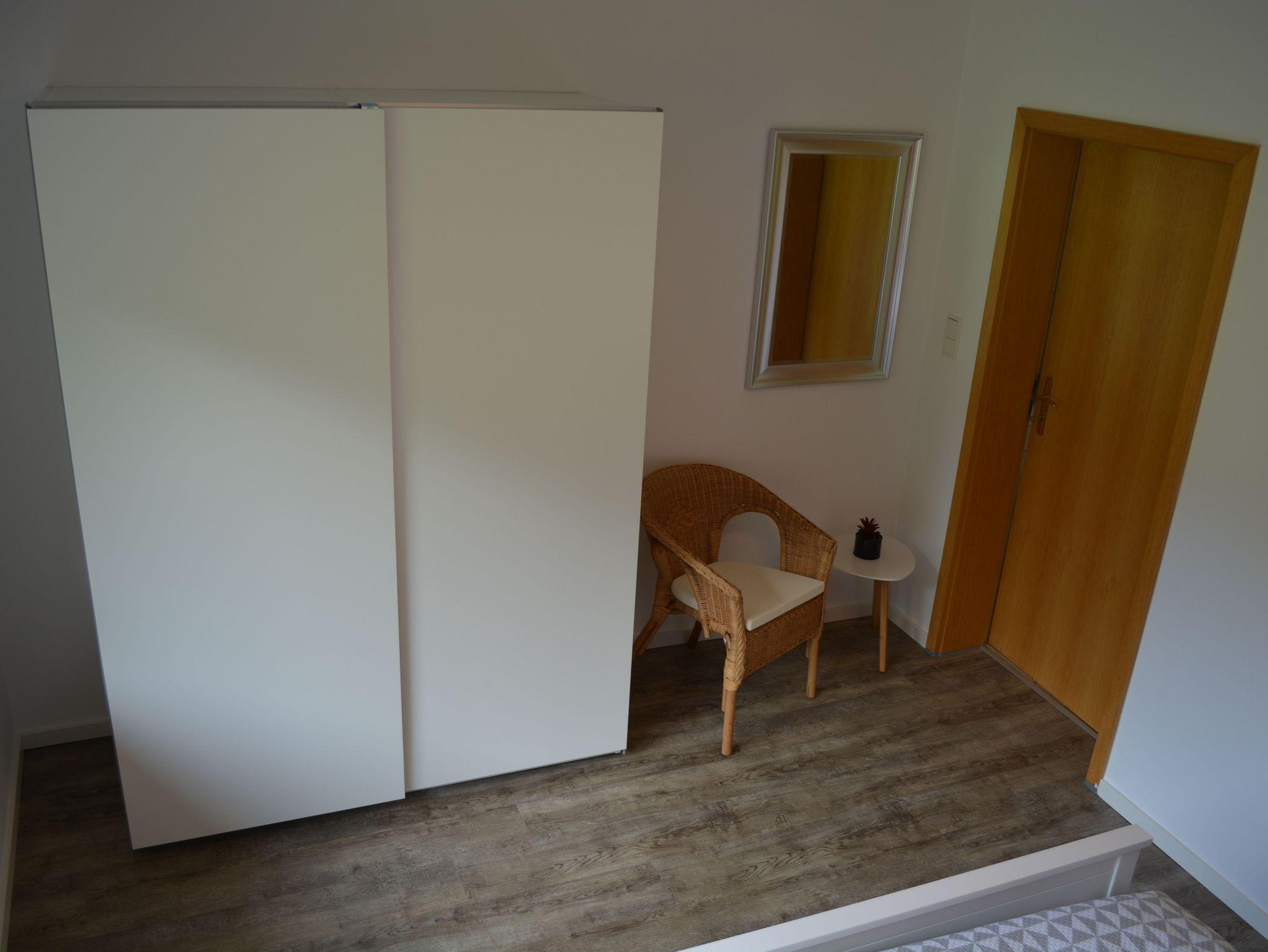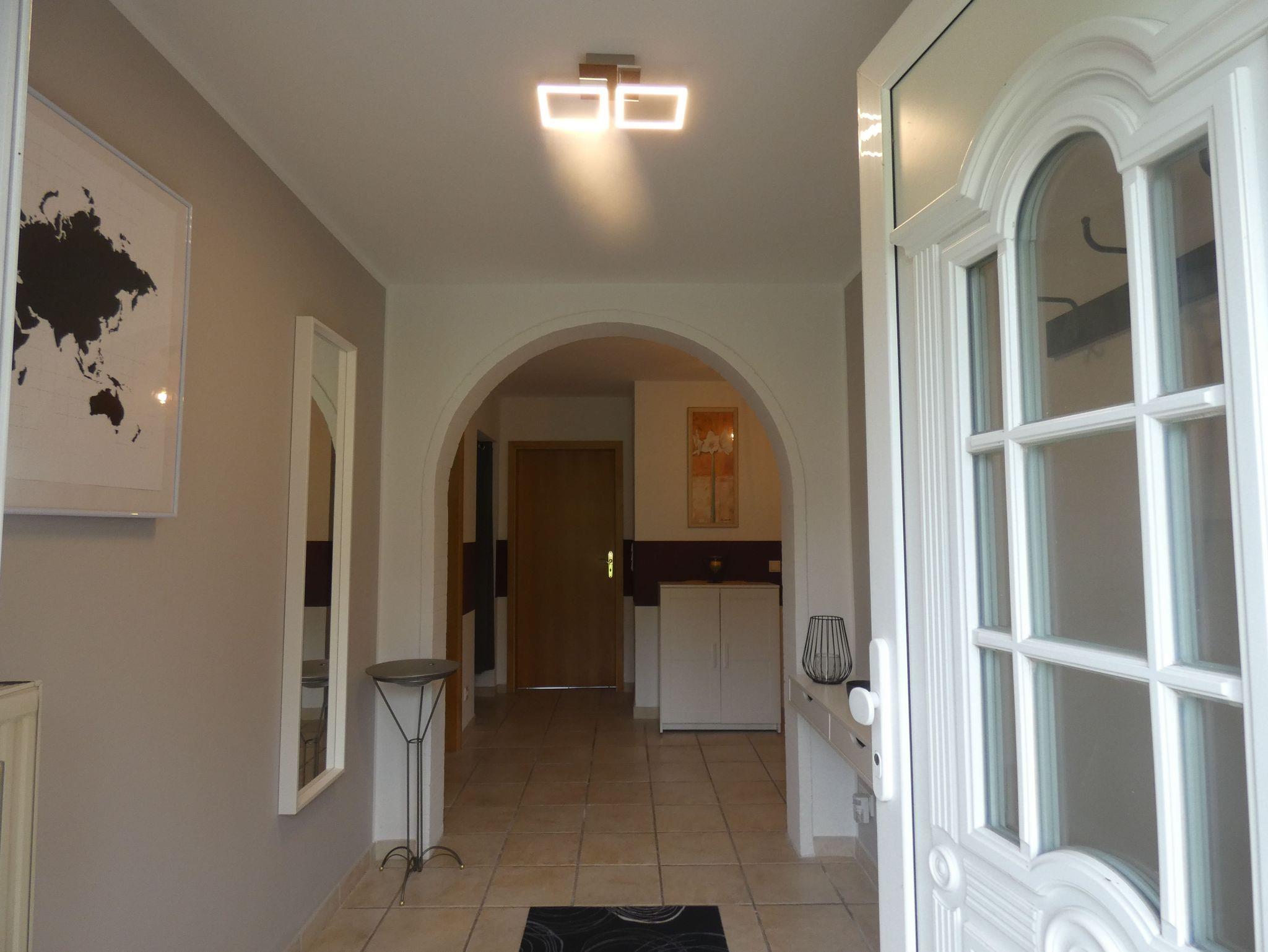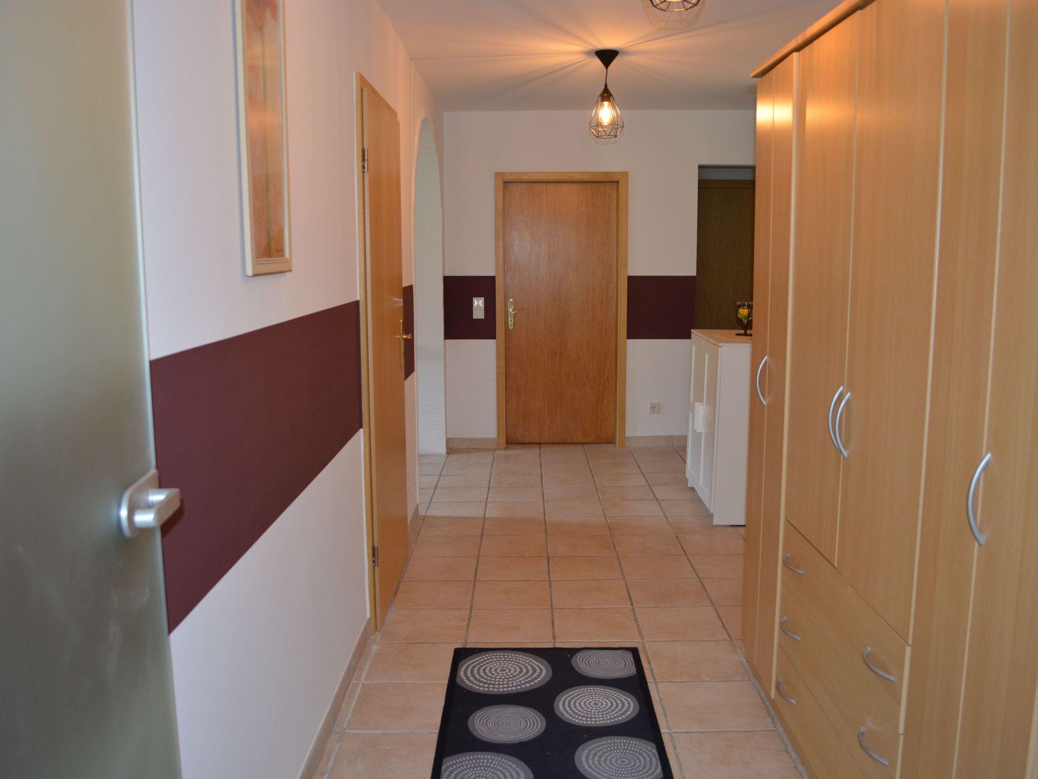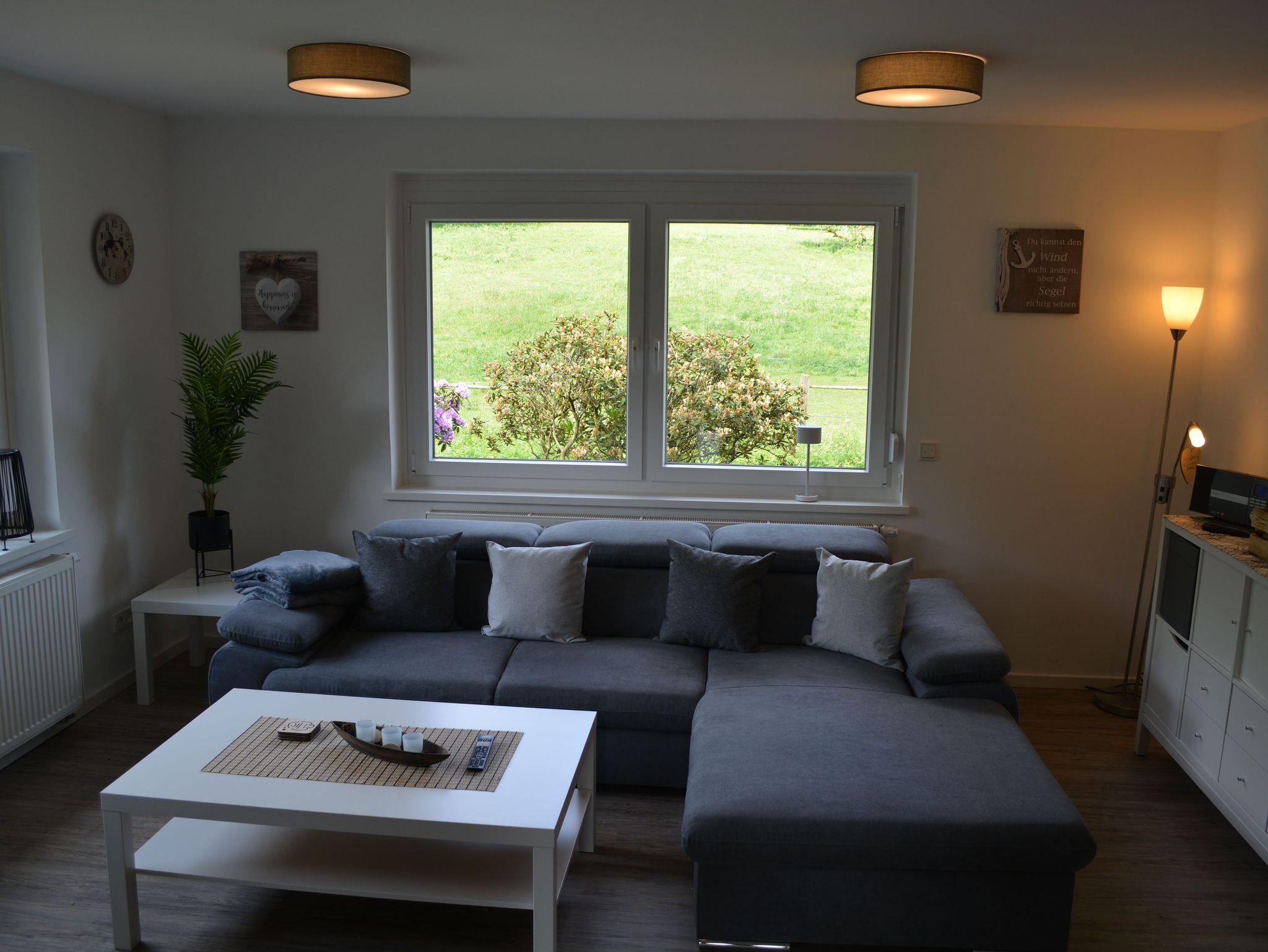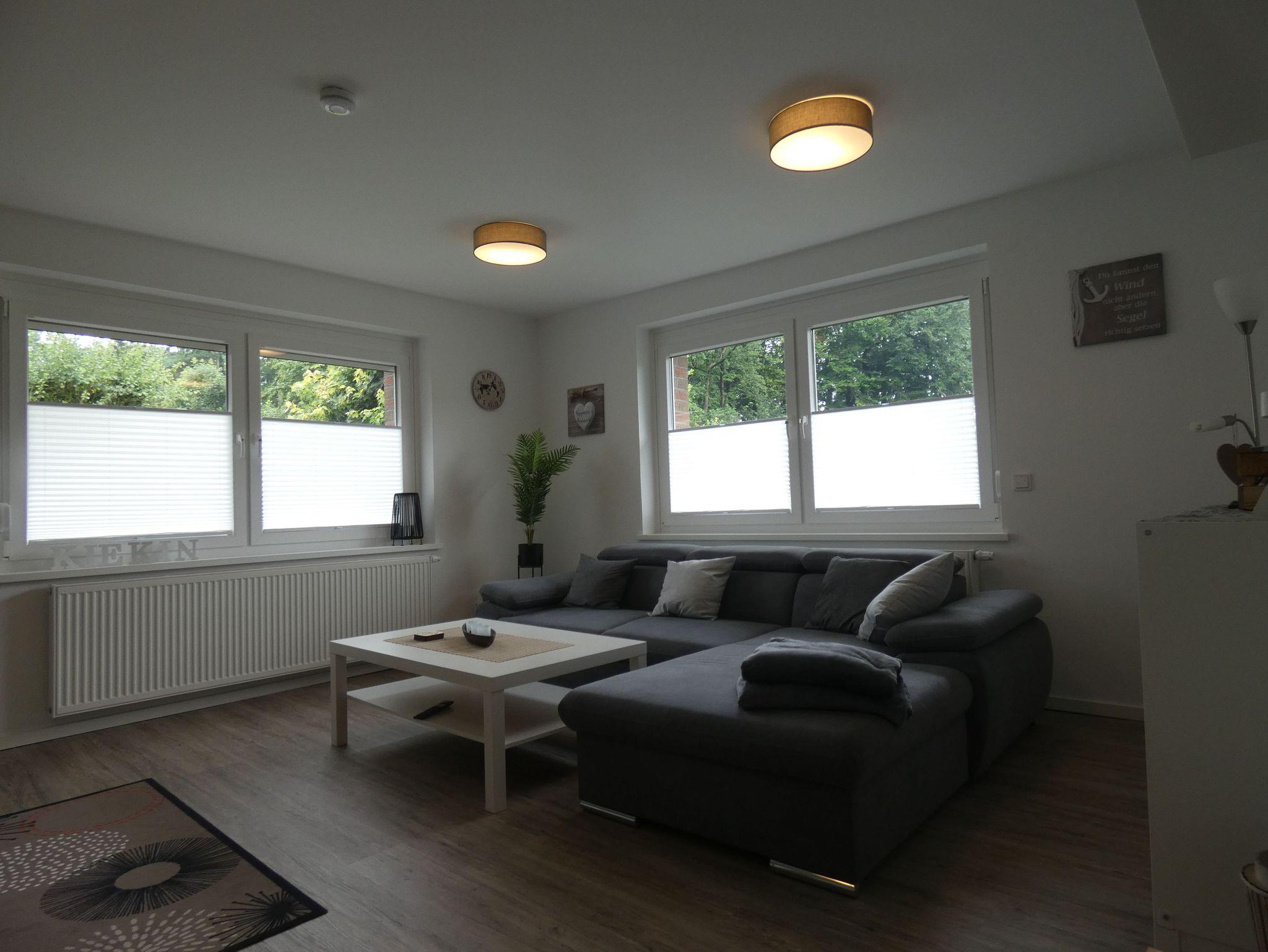 Herzlich Willkommen in Inauen`s Kiek in. Durch den separaten, barrierefreien Eingang erreichen sie die großzügig geschnittene, 90 qm große Ferienwohnung. Wer die Ruhe und Gelassenheit sucht ist bei uns genau Richtig. Durch den freundlichen Eingangsbereich erreichen Sie Küche, Bad, Wohnzimmer mit großzügigem Sofa, Smart TV, Internet Radio und traumhaften Ausblick, sowie zwei der drei Schlafräume. Der dritte Schlafraum ist vom Wohnzimmer aus zu erreichen. Von diesem Schlafraum gelangen Sie auf die südlich ausgerichtete, überdachte Terrasse. Im Wohnzimmer kann das komfortable Ecksofa zum Schlafplatz für eine weitere Person hergerichtet werden..Auch auf Kabelfernsehn und W-Lan müssen sie nicht verzichten. Sollten sie doch einmal im Urlaub arbeiten müssen oder befinden sich gar auf Geschäftsreise, gibt es im Schlafzimmer einen Schreibtisch mit Ausblick ins Grüne. Die Betten in den Schlafzimmern haben zwei getrennte Matratzen und insgesamt ein Liegefläche von 1,80 X 2,00 Meter, mit Kopf- und Fußteil. Die Nachttische bieten Ablagefläche für die Abendlektüre .Das Bett im neu entstandenen Schlafzimmer hat eine Größe von 1,40x 2,00 m.