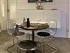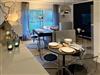 Hier können Sie mit zwei Personen gemütlich essen. Mit Besuchern wird’s kuschlig, aber bei einem Glas Wein einen Happen schnappen sollte möglich sein. Platzsets, Geschirr, Besteck, Gläser für Wein, Wasser, Saft, Weizenbier und Sekt finden Sie im Sideboard an der Wand.