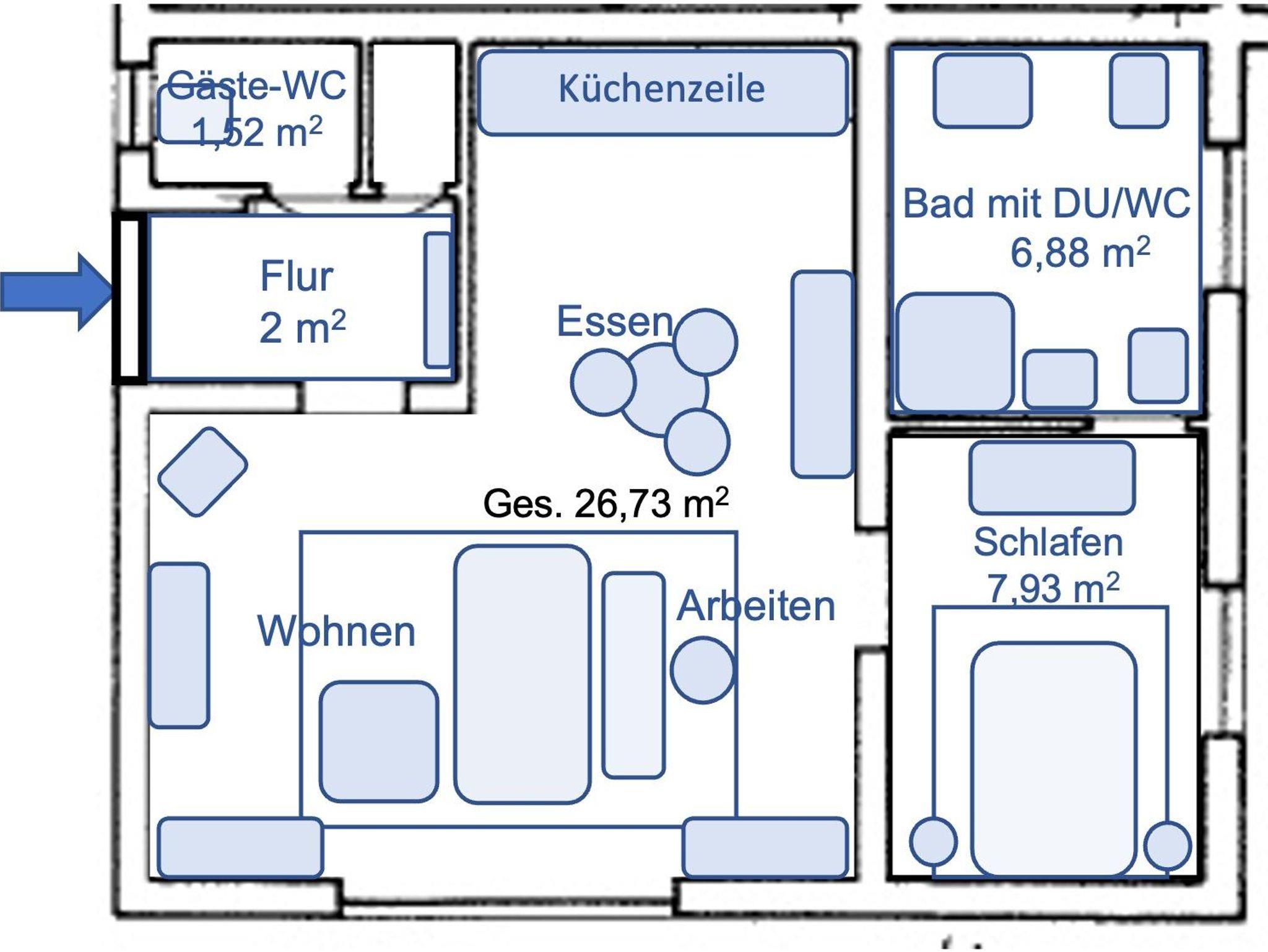 Eine gemütliche Couch mit Fußhocker lädt zum Ausspannen nach einem ereignisreichen Tag ein: entweder beim Lesen, Musik hören (BT-fähiges DAB-Radio), Fernsehen (Flatscreen Smart-TV) oder zum Vorbereiten des nächsten Tages. Hierfür halten wir in unserer Vitrine diverse Infomaterialien über Marburg und Umgebung für Sie bereit. Bedienen Sie sich gerne.