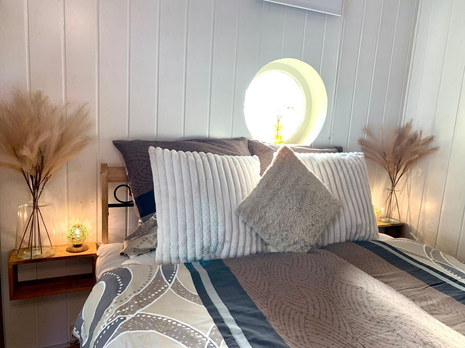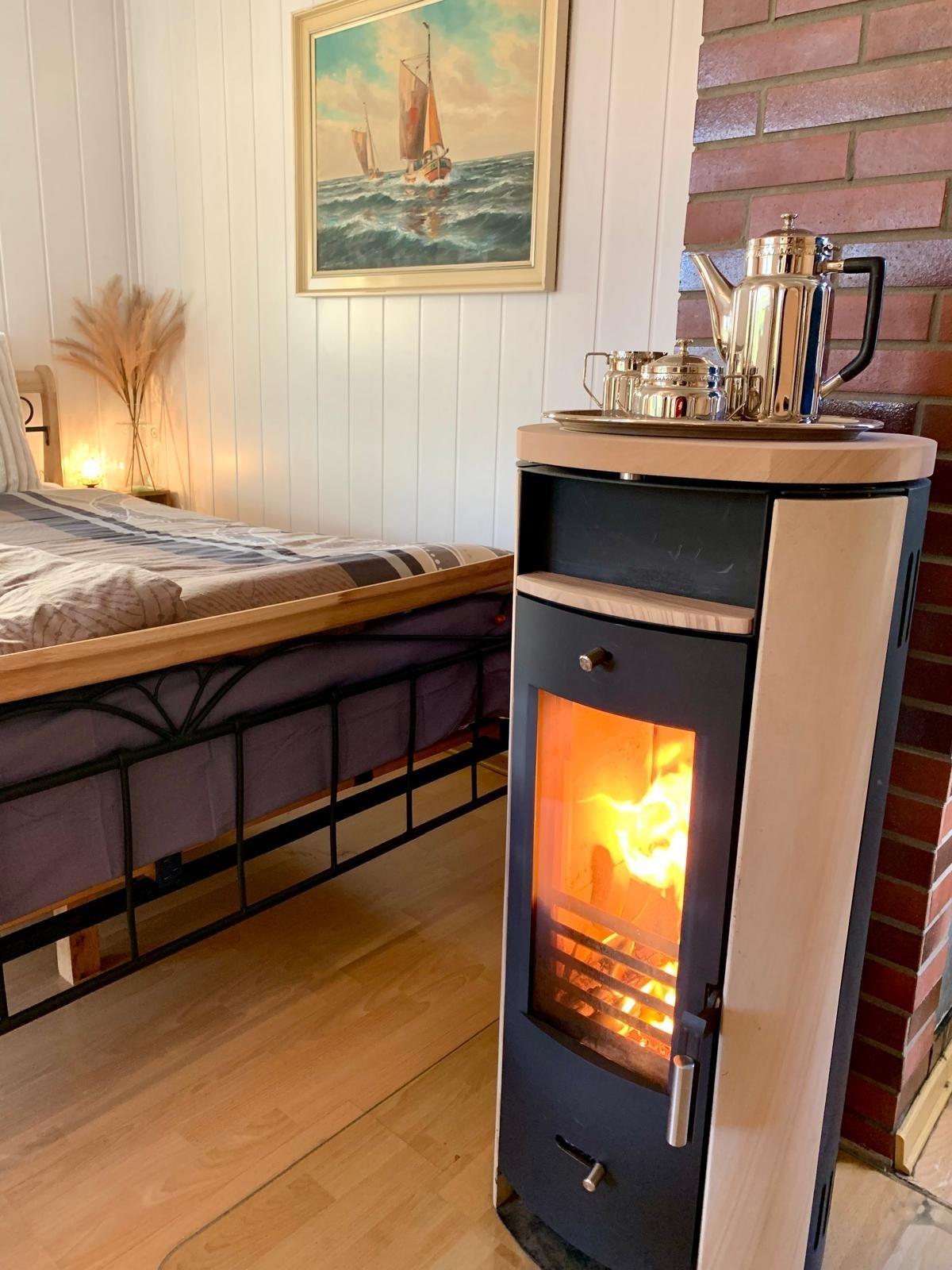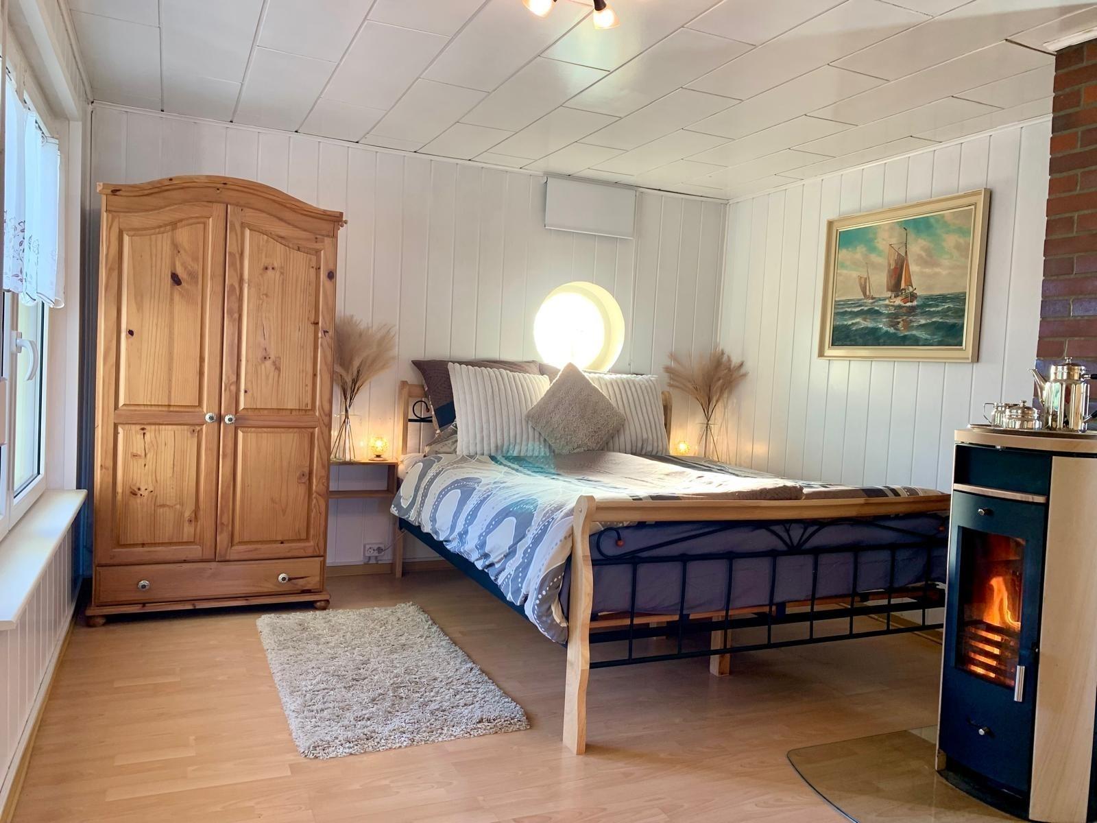 Ein gemütliches Schlafzimmer mit Kamin, ein sonniger Wohn- Essbereich und die gemütliche Sonnenterrasse mit Blick in den Garten sind perfekt für einen erholsamen Paarurlaub in der Natur.