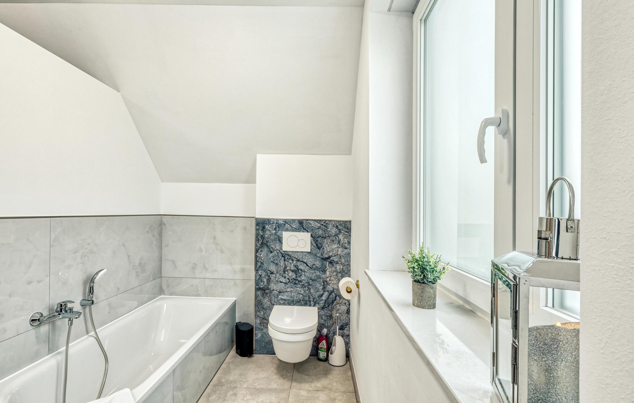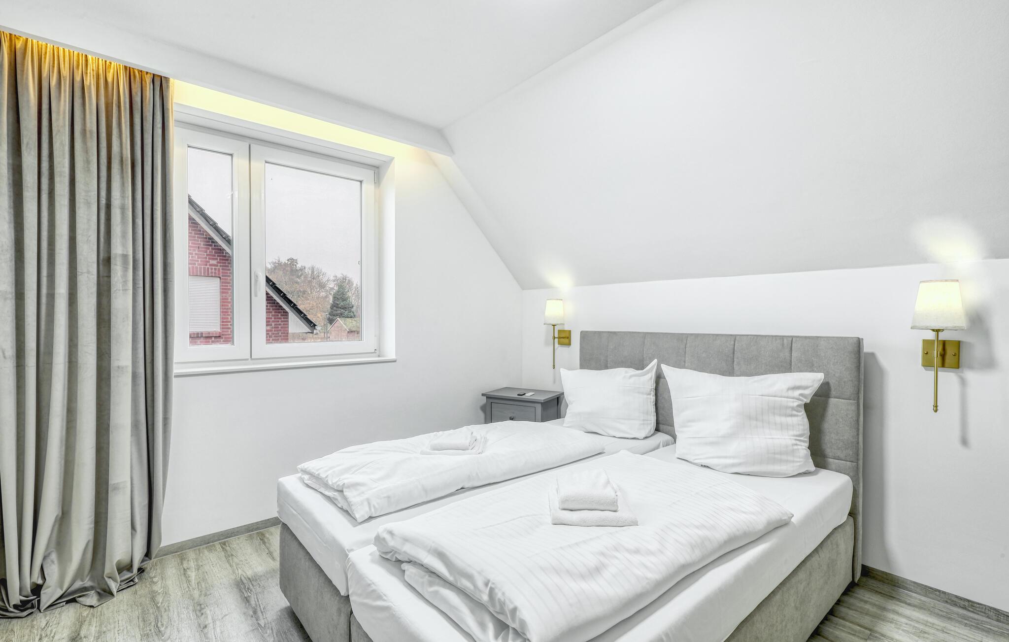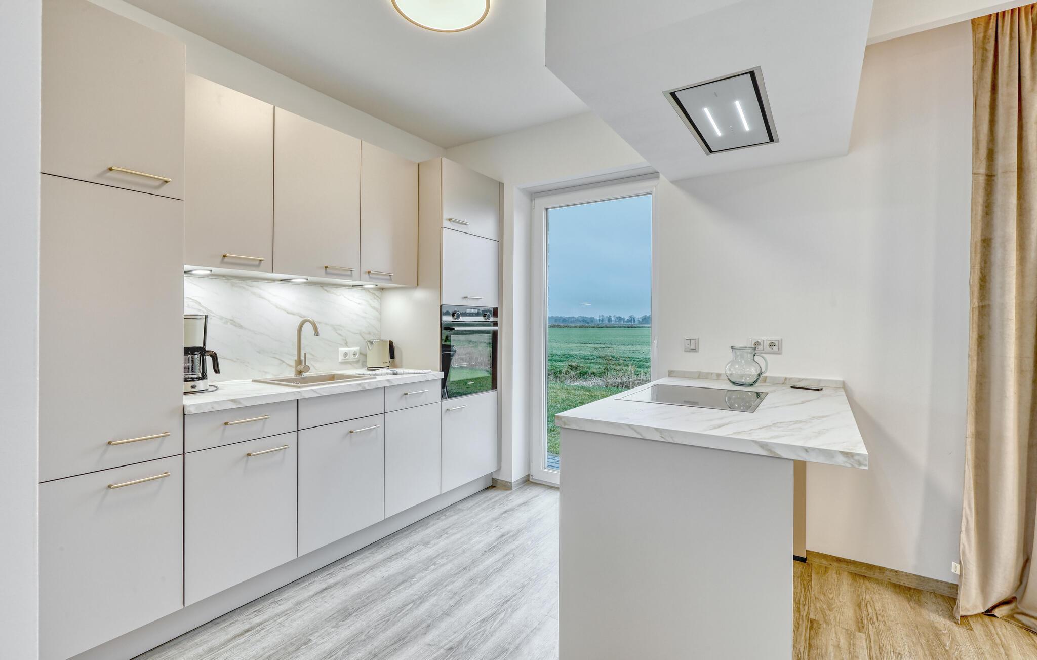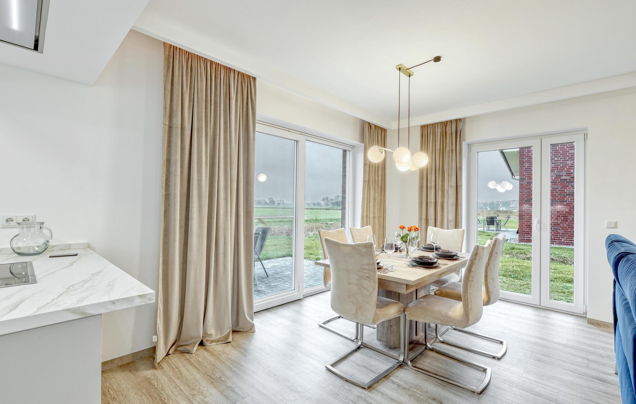 Træd ud på terrassen og slap af på havemøblerne. Den åbne græsplæne tilbyder en uhindret udsigt over det omkringliggende landskab og lægger op til at værdsætte den vidtstrakte nordtyske kystregion. Udnyt de fredelige omgivelser til at afslutte dagen udendørs og observere naturen lige uden for døren.