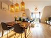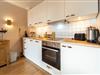 Die Wohnung verfügt über einen offenen Wohn- und Essbereich mit einer modernen, gut ausgestatteten Küche. Hier finden Gäste alles, was sie zum Kochen benötigen – vom Backofen über eine Spülmaschine bis hin zu Kaffeemaschine, Toaster und Wasserkocher. Eine gemütliche Schlafcouch bietet zusätzlichen Platz zum Ausruhen. Das separate Schlafzimmer ist mit einem komfortablen Doppelbett ausgestattet und lädt nach einem langen Tag an der frischen Nordseeluft zu erholsamen Nächten ein.