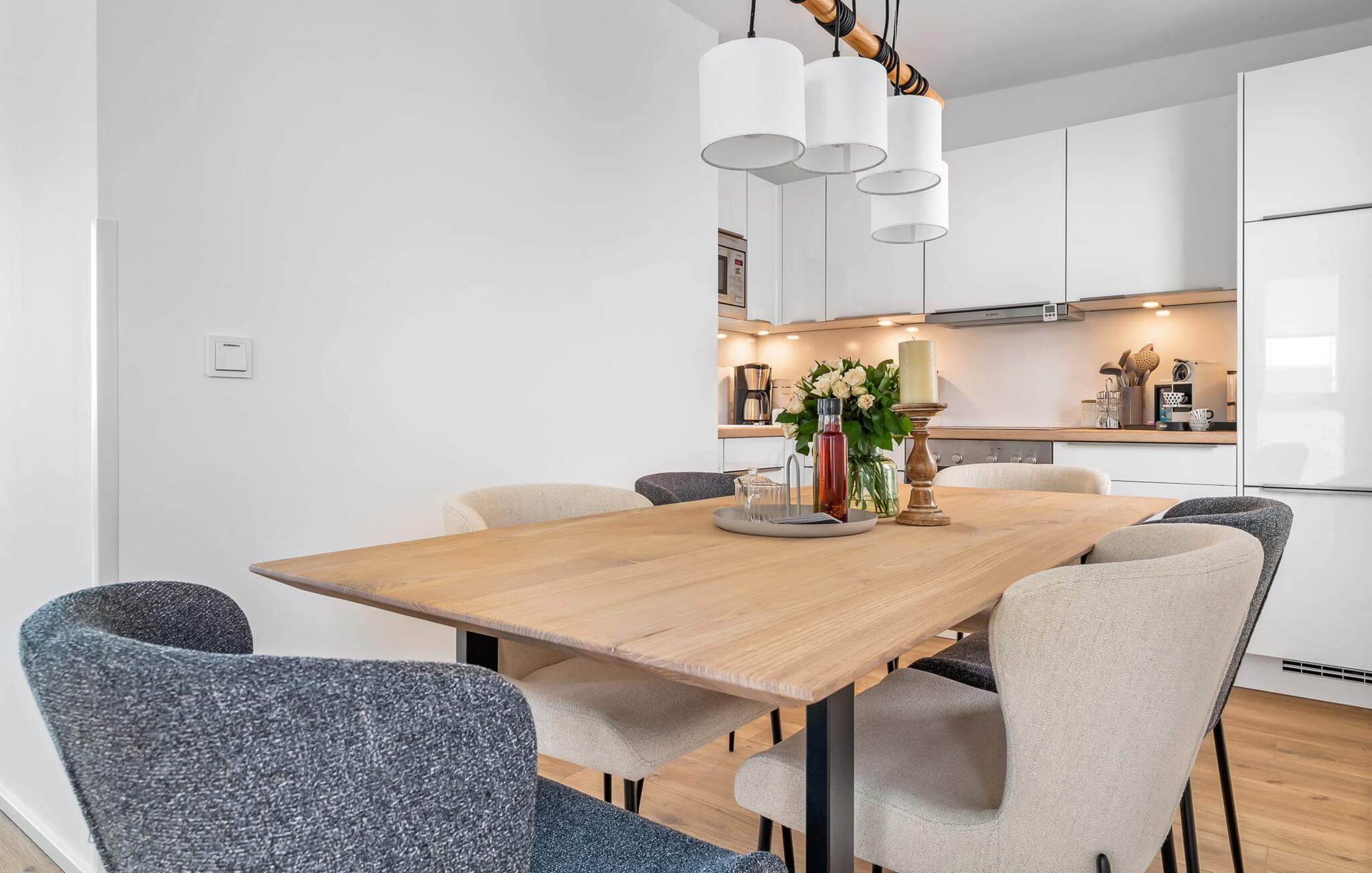 Det er ikke så let at undslippe Captivas kløer: den rummelige etagelejlighed på øverste etage er et rigtigt tilflugtssted, som I aldrig vil forlade. Med plads til op til seks personer, tre soveværelser, to badeværelser og egen sauna, tilbyder det den all-round pakke til en uforglemmelig ferie. Et særligt højdepunkt: den store terrasse, hvorfra I kan se den glitrende Østersø. Magisk smuk! Stue- og spisepladsen i stueetagen er sprængfyldt med hygge. Når I kommer ind, bemærker I måske pejsen? Eller et af de 3 fladskærms-tv fordelt i hele ferielejligheden? Indretningsstilen er moderne og komfortabel. Ideel til at tilbringe tid sammen mellem en spilleaften og madlavning. Denne ferielejlighed har naturligvis også et rummeligt udeareal. Havemøbler af høj kvalitet er indrettet som opholdsområde og danner det perfekte udgangspunkt for en dejlig morgenmad om morgenen med solskin og masser af udsigt. Ferielejligheden har i alt tre soveværelser. To af dem er udstyret med en dobbeltseng, en med to enkeltsenge. Et brusebad (bruser og toilet) inklusive en sauna (infrarød kabine) er placeret i stueetagen. Et andet komplet badeværelse, bestående af et badekar med bruser og toilet, er på øverste etage. Uanset om det er til en lille snack eller en rigtig stor aftenmenu: I kan slippe dampen af hjertens lyst i det fuldt udstyrede køkken. Der er også vaskemaskine og håndklædevarmer på badeværelset. P-pladsen tilhørende ferielejligheden ligger lige foran huset. Der er også et aflåseligt cykelskur til rådighed. Vores yndlingssted: ... der er faktisk to her! Efter at have slappet af i saunaen, kan I samle jer og gå til terrassen. Lad jeres blik vandre i det fjerne og indånd den gode Østersøluft. Glimrende. Bemærk venligst: OstseeResort Olpenitz er meget populært, og der bygges fortsat i parken. Ikke desto mindre kan I se frem til en 5-stjernet standard og et førsteklasses ophold. Byggeaktiviteterne kommer ikke til at forstyrre jer på ferien, og derfor gives der ikke yderligere afslag i prisen.
