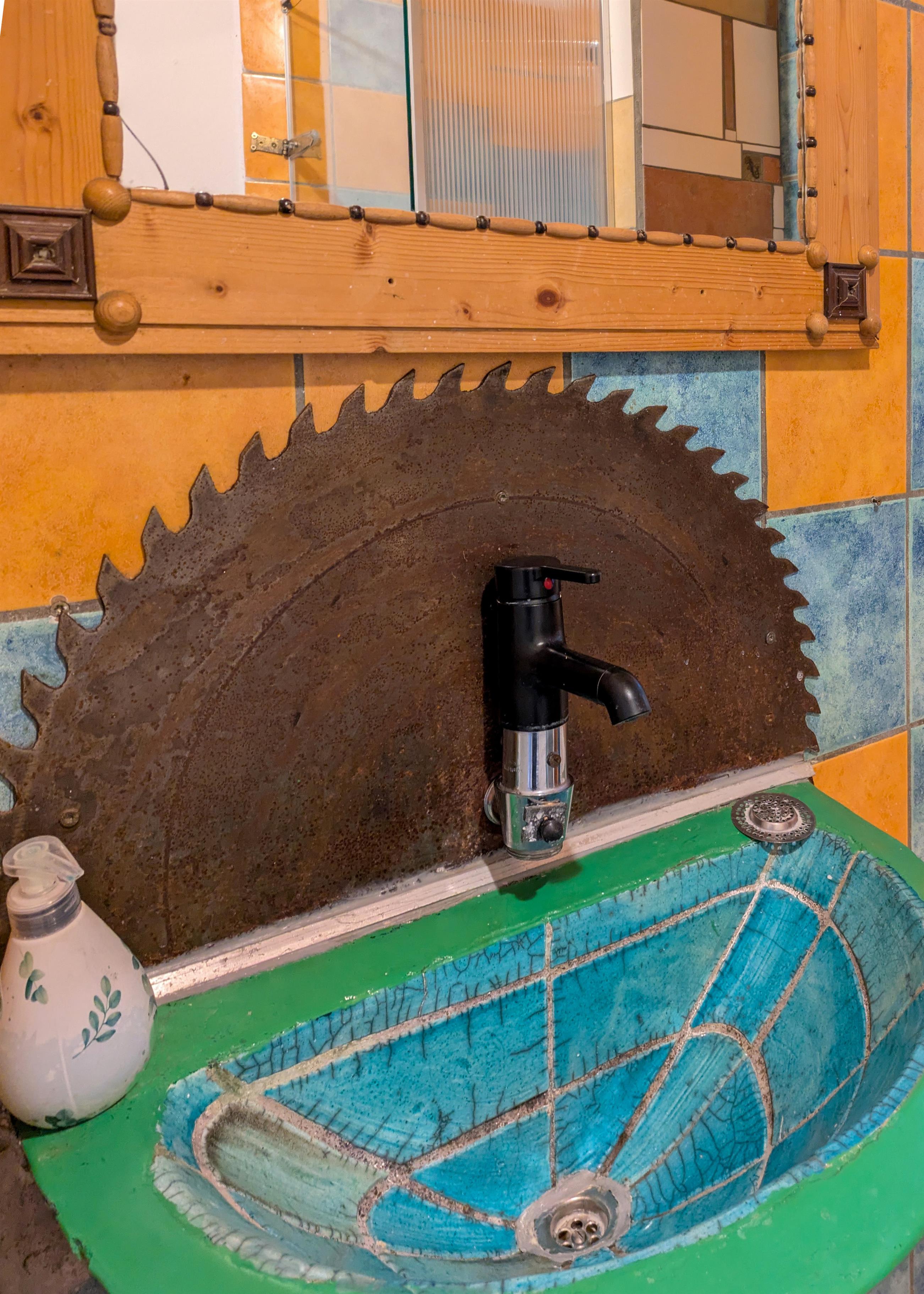 Zwei Schlafräume warten darauf, dass ihr endlich ins Bett fallt. Und das bunte Bad? Das ist unser Versuch, den modernen Komfort reinzupressen. Ihr wisst schon: damit ihr nicht denkt, ihr wärt im Museum.
