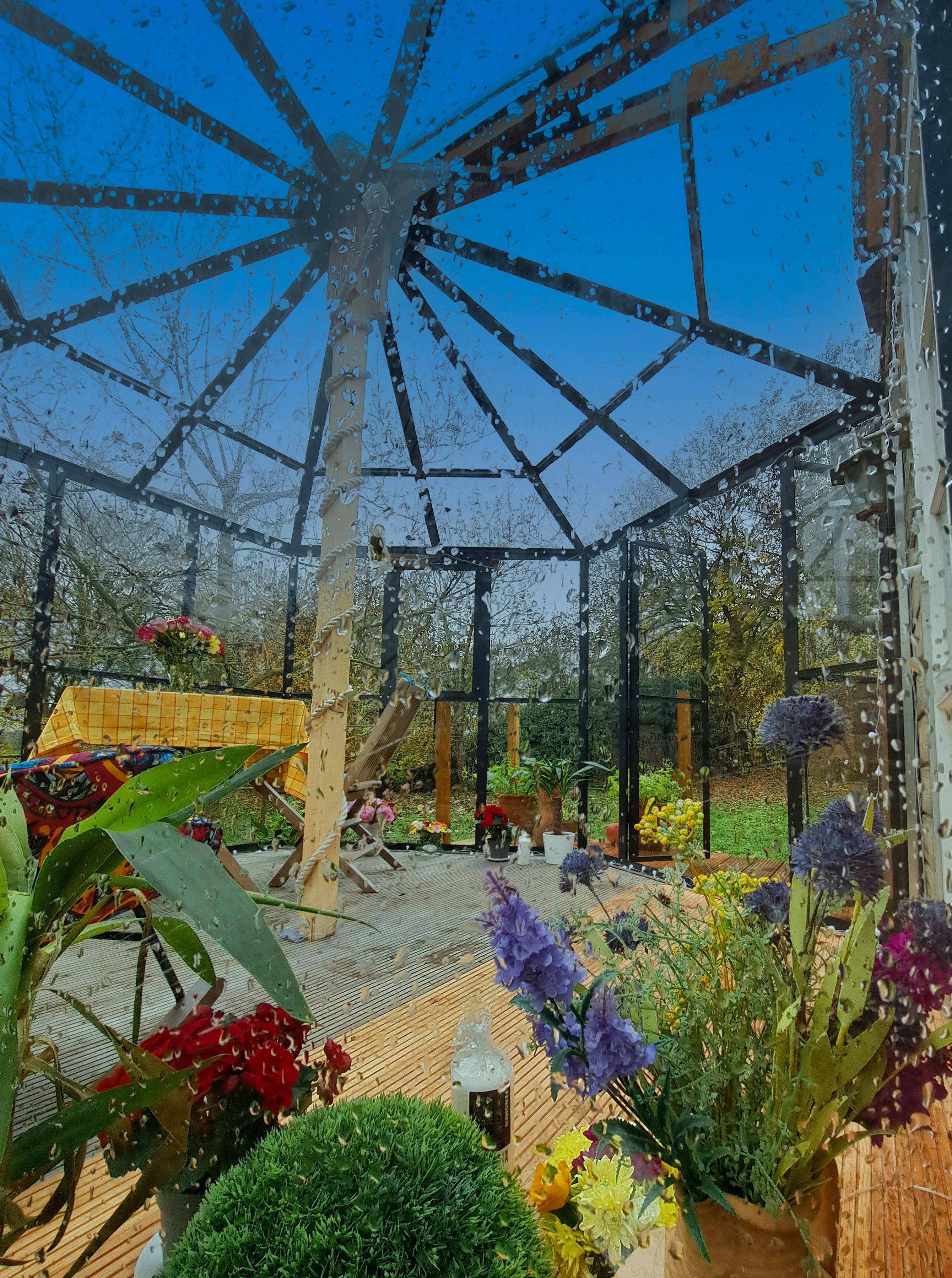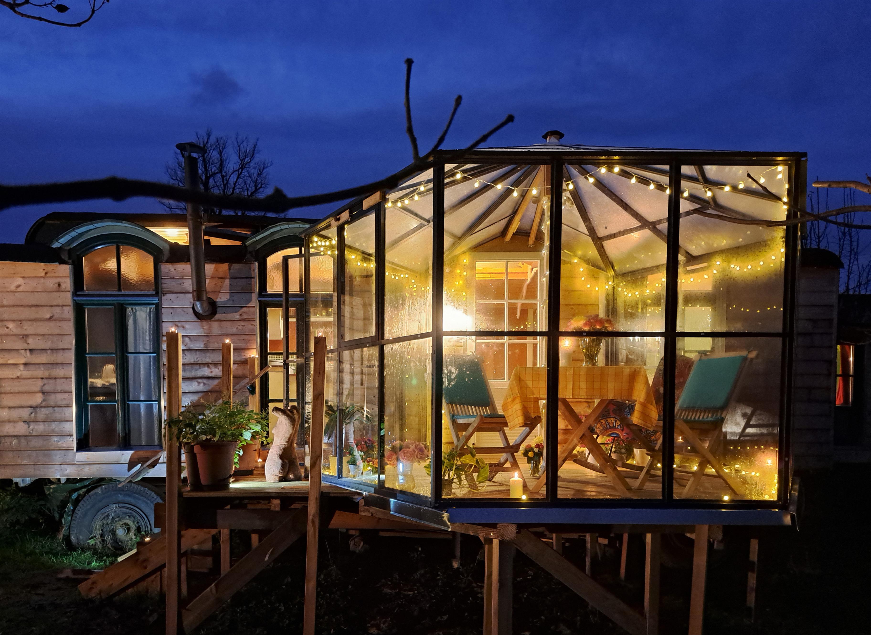 Und dann ist da noch unsere Sternenlounge: ein gläserner Rückzugsort mit Blick ins Grüne – oder nachts direkt in den Himmel. Zugegeben, er ist frisch – nennen wir’s „nordisch klimatisiert“. Aber eingekuschelt mit Tee in der Hand und Sternen überm Kopf fühlt sich das einfach magisch an.